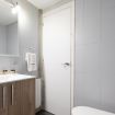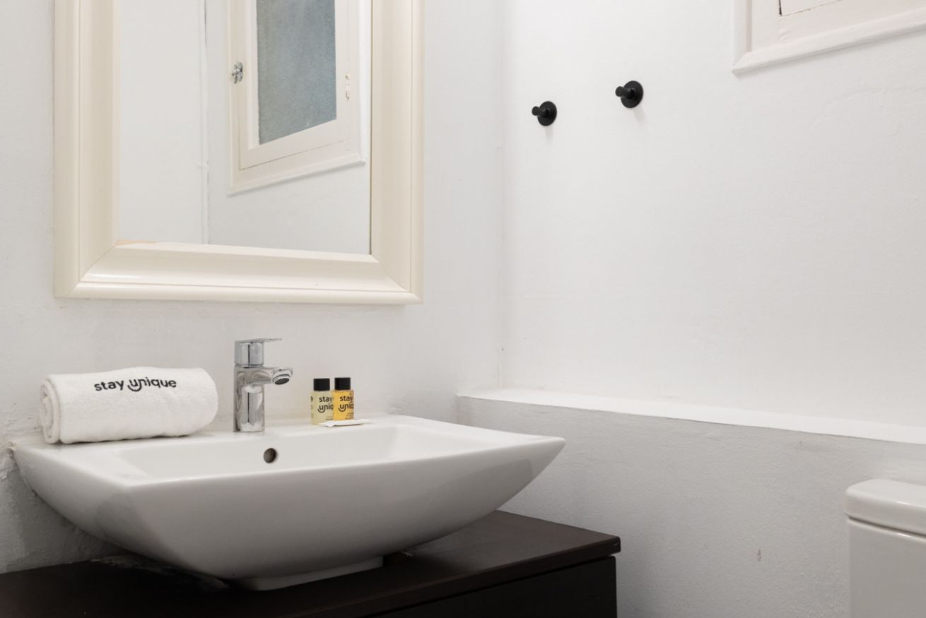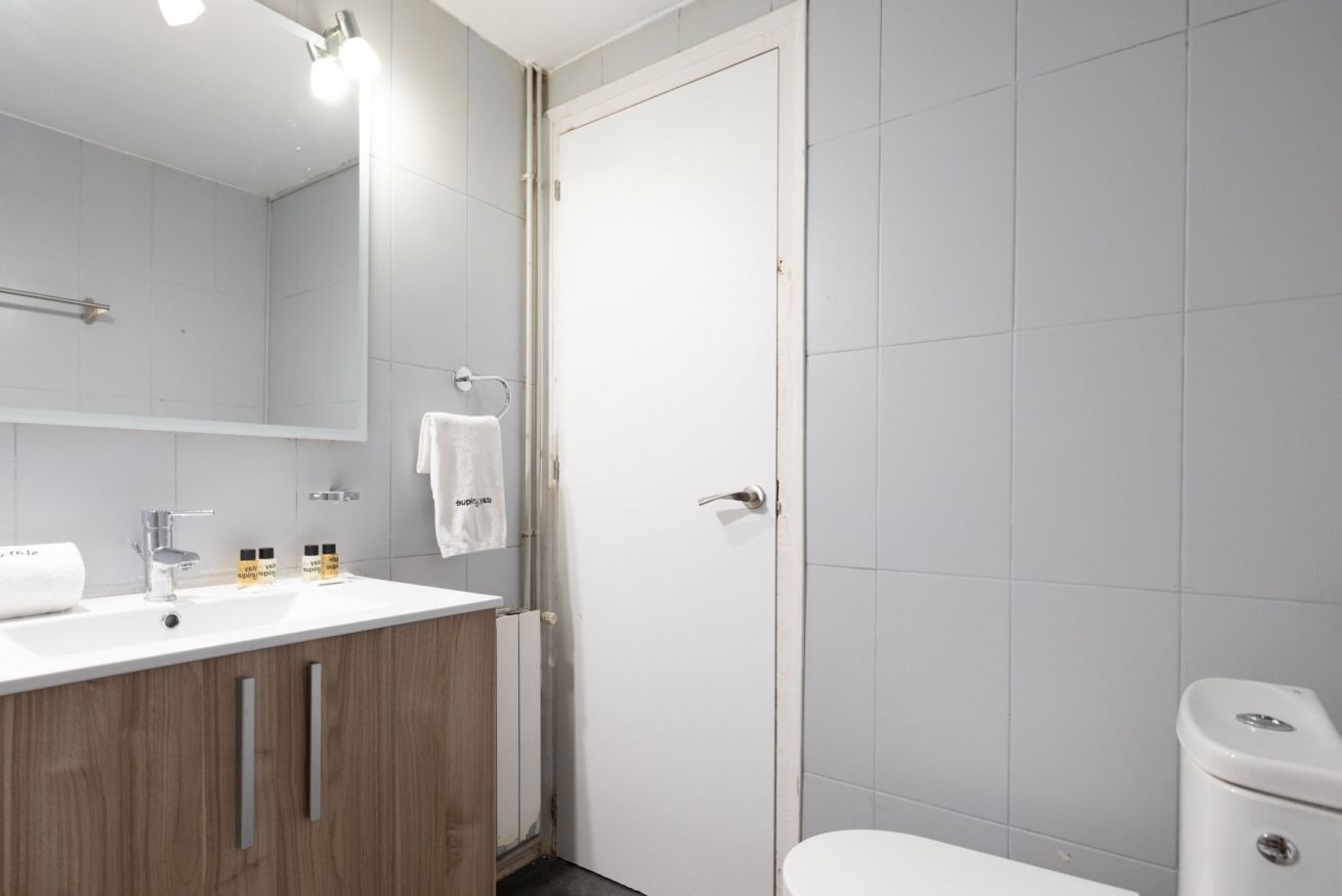 Este espacioso apartamento tiene 1 baño completo y 1 aseo con lavabo. El baño tiene todo lo necesario, desde toallas hasta artículos de aseo.