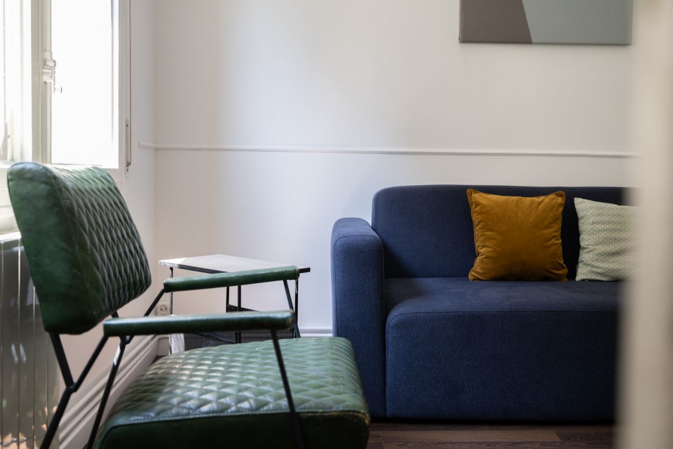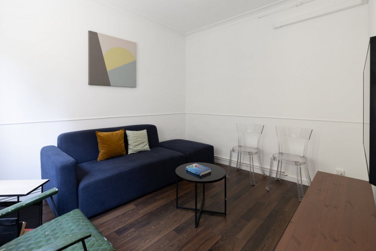 La zona de estar se encuentra en el centro del apartamento, por lo que es fácil moverse por el espacio. El apartamento tiene un bonito suelo y una decoración discreta de buen gusto.