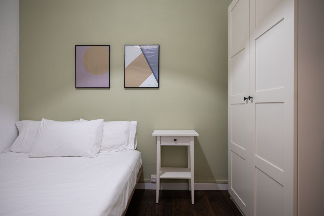 Este impresionante apartamento cuenta con 3 dormitorios que permiten vivir hasta 6 personas. Los tres dormitorios están equipados con una cama doble de alta calidad, ropa de cama de marca y una suave iluminación natural. Las ventanas proporcionan a la habitación una impresionante luz natural que asegurará que el día comience de la manera correcta. Los dormitorios son cálidos y acogedores, y un gran lugar para relajarse después de explorar la hermosa ciudad.