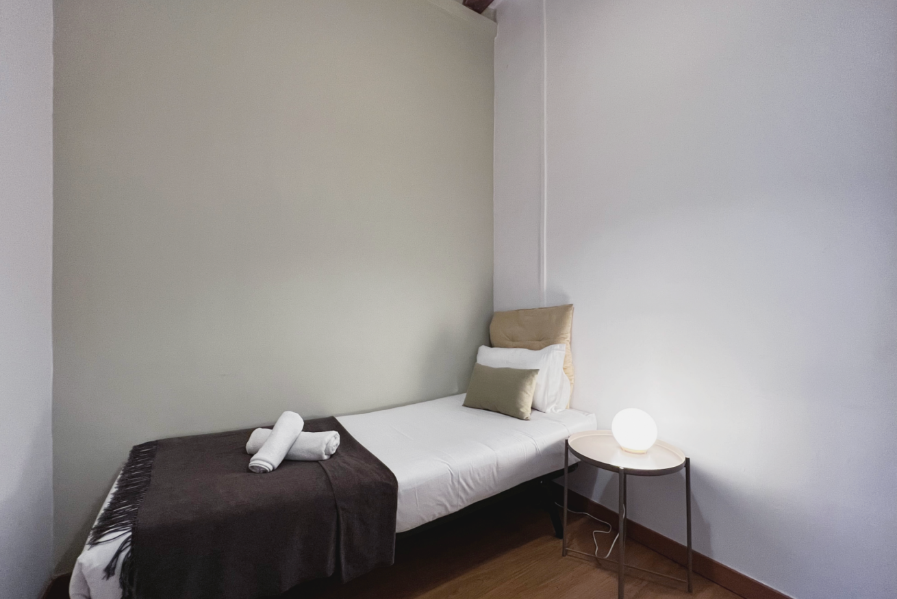 Este impresionante apartamento en Barcelona cuenta con 4 dormitorios. El primer dormitorio está equipado con una cama doble de alta calidad, ropa de cama de marca y suave iluminación natural. Las ventanas son grandes y proporcionan a la habitación una impresionante luz natural que asegura que el día comience de la manera correcta. El segundo, tercer y cuarto dormitorio son ideales para niños o amigos. Los dormitorios son cálidos y acogedores, y un excelente lugar para relajarse después de explorar la hermosa ciudad._x000D_
