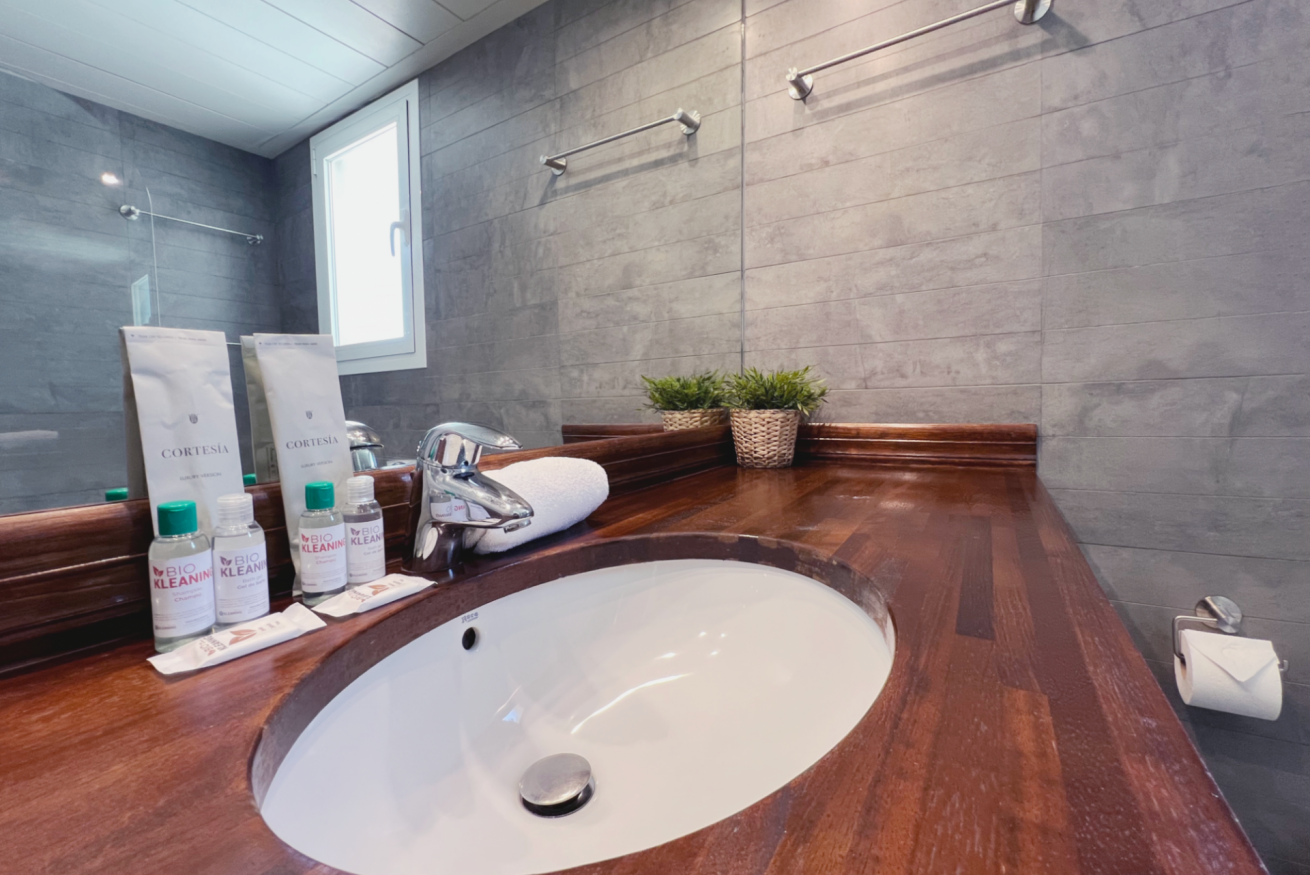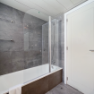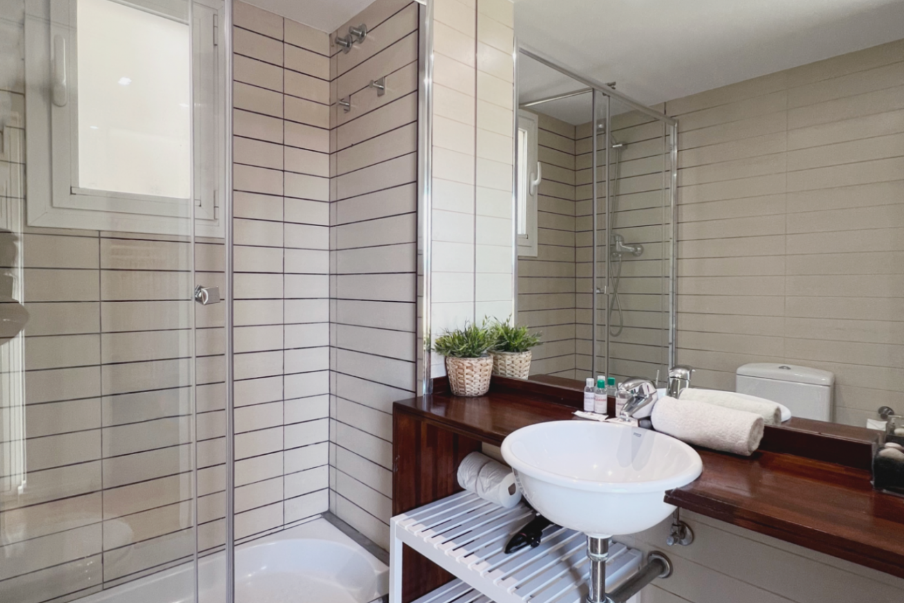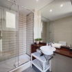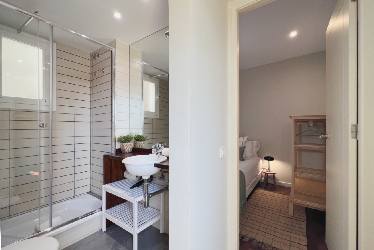 Este espacioso apartamento tiene 2 baños completos. El dormitorio 1 tiene un baño ensuite con bañera. El baño 2 tiene una ducha. Los baños tienen todo lo necesario, desde toallas hasta artículos de aseo.