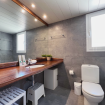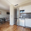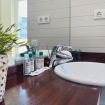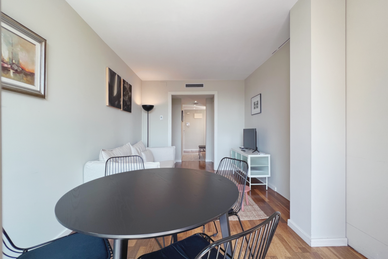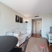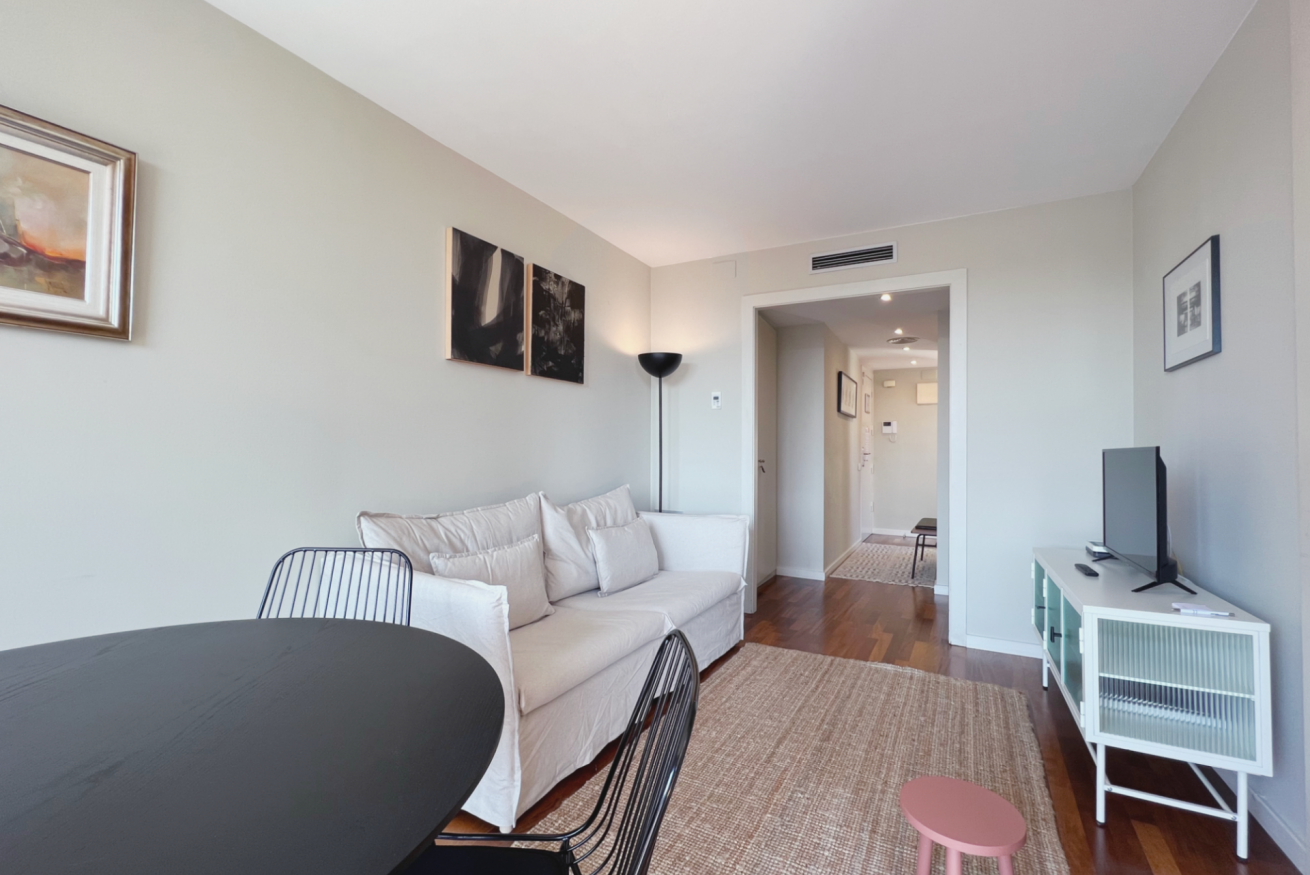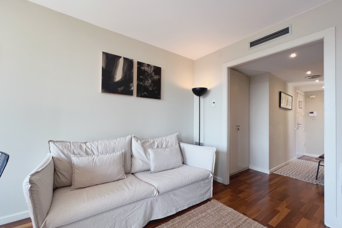 La zona de estar se encuentra en el centro del apartamento, por lo que es fácil moverse por el espacio. El apartamento tiene un bonito suelo y una decoración discreta de buen gusto.