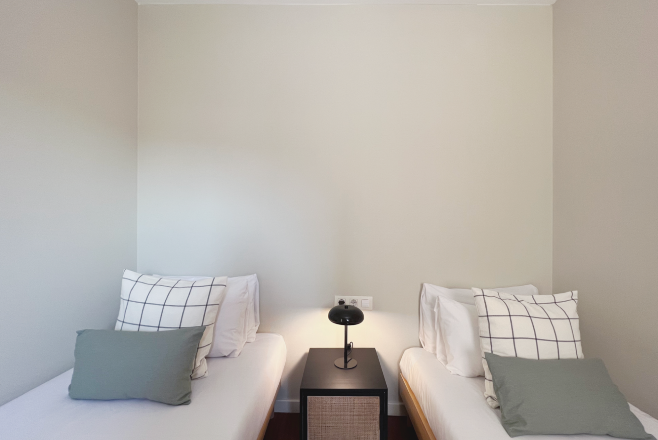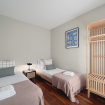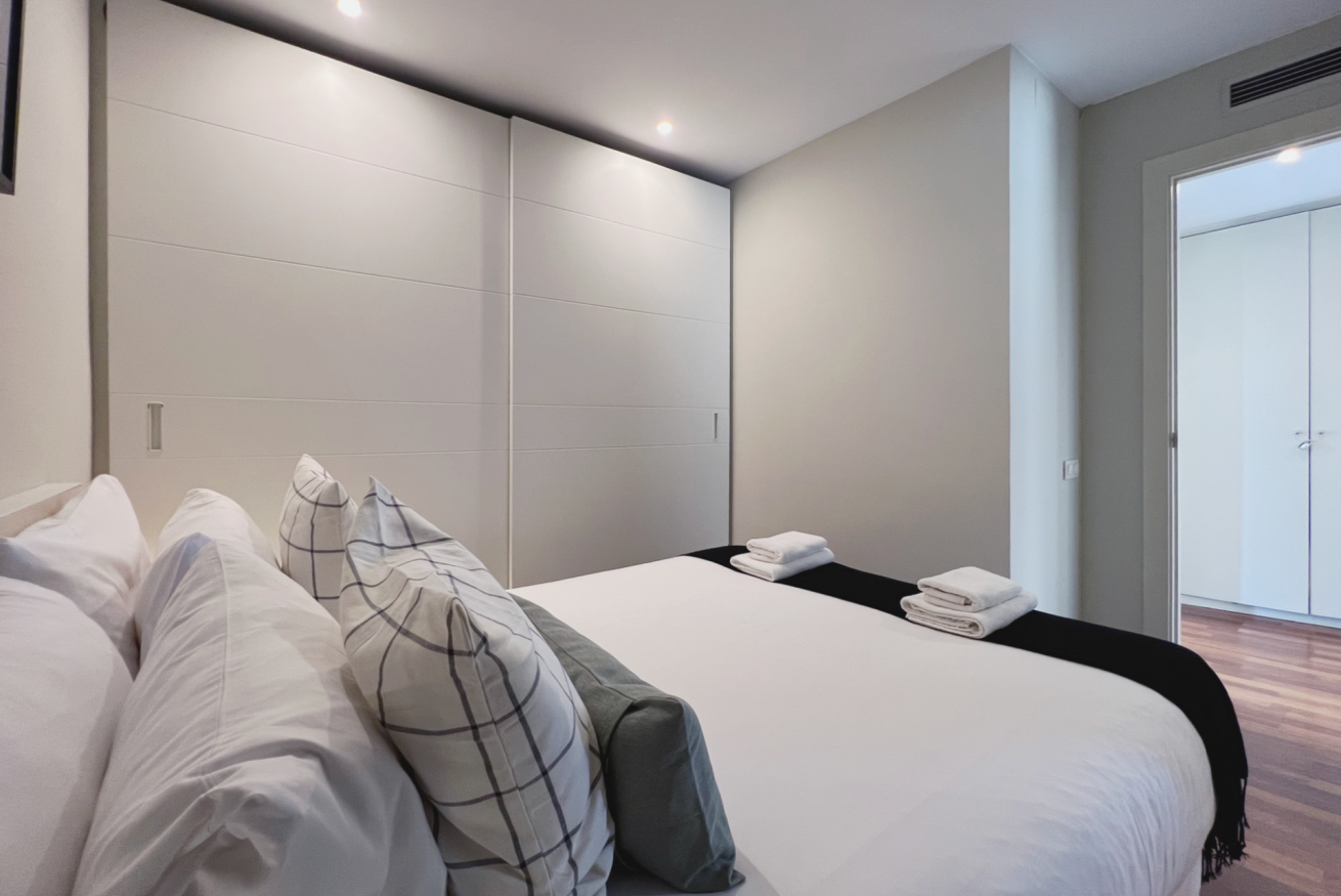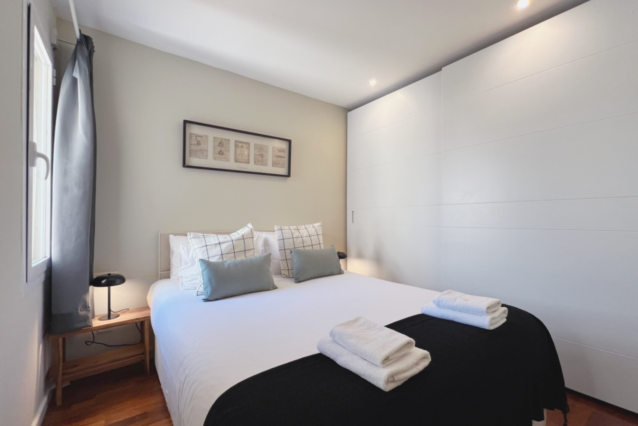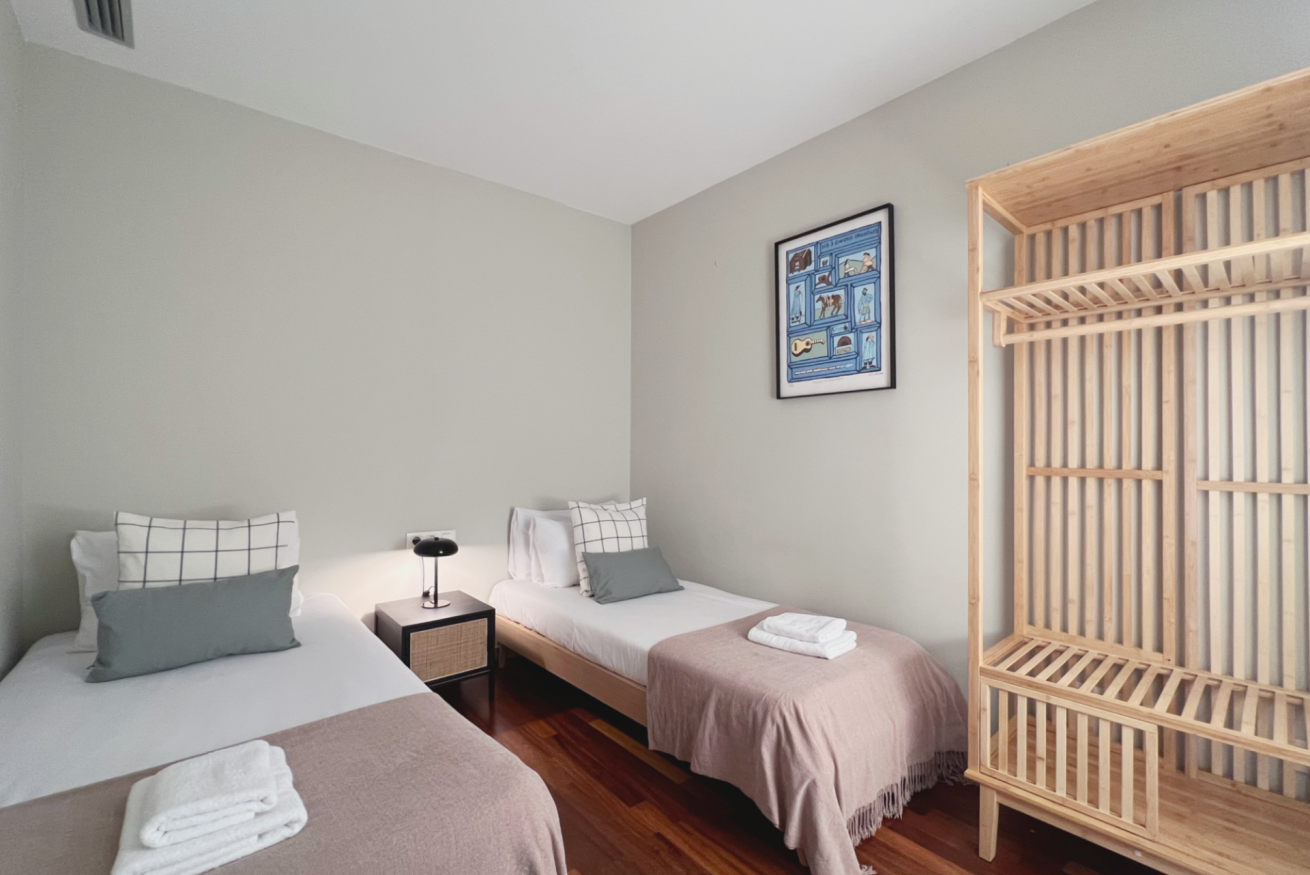 Este impresionante apartamento cuenta con 3 dormitorios que permiten vivir hasta 6 personas. El primer dormitorio con baño ensuite está equipado con una cama doble de alta calidad, ropa de cama de marca y una suave iluminación natural. Las ventanas son grandes y proporcionan a la habitación una impresionante luz natural que asegurará que el día comience de la manera correcta. El segundo dormitorio está equipado con una cama de matrimonio y el dormitorio tres tiene dos camas individuales, ideales para niños o amigos. Los dormitorios son cálidos y acogedores, y un gran lugar para relajarse después de explorar la hermosa ciudad.