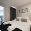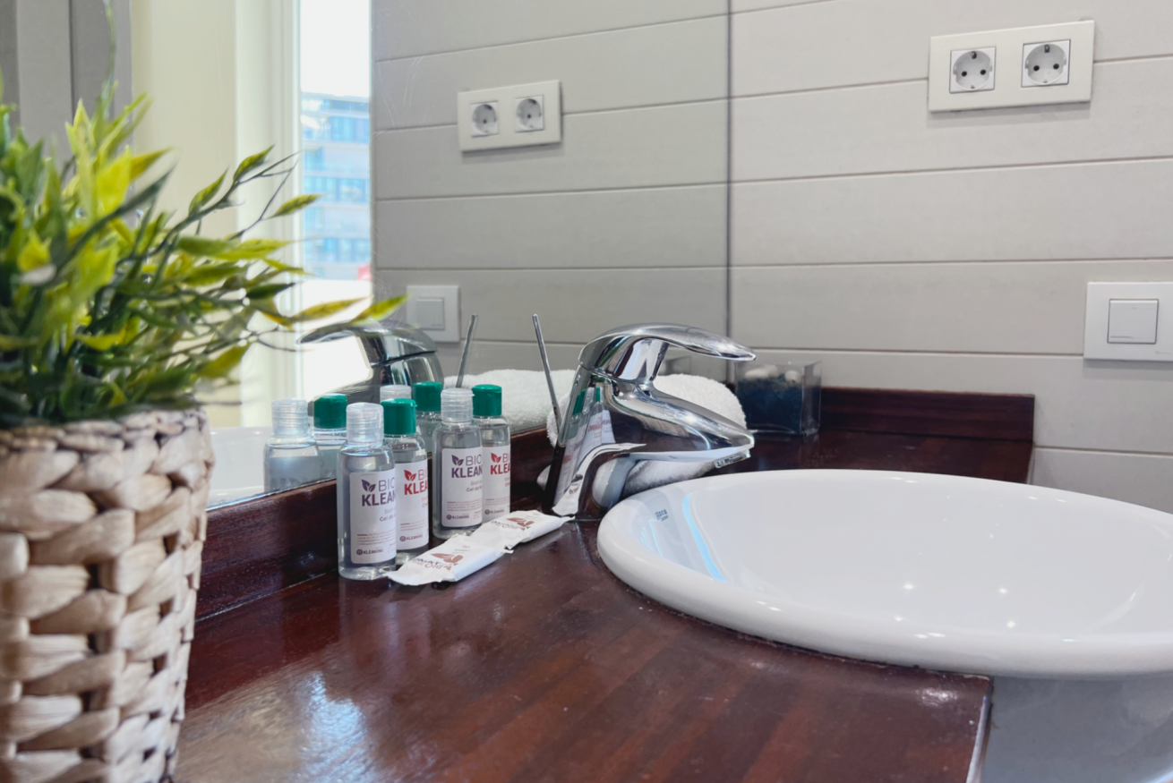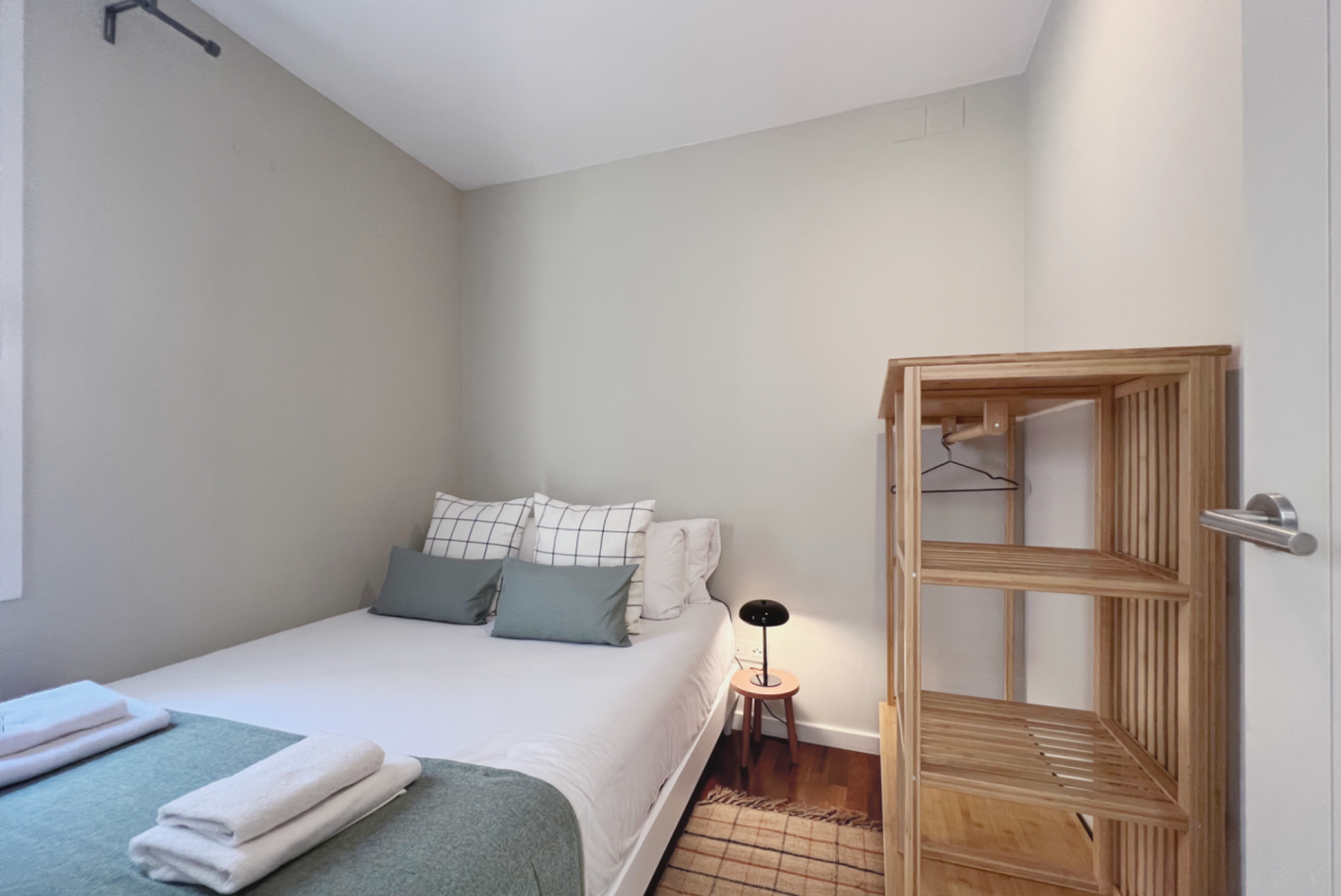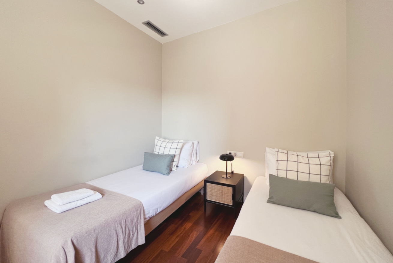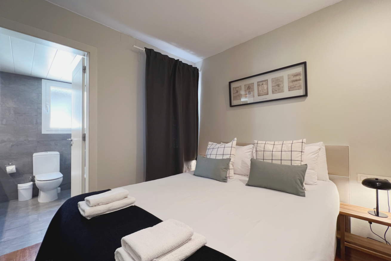 Este impresionante apartamento cuenta con 3 dormitorios que permiten vivir hasta 6 personas. El primer dormitorio con baño ensuite está equipado con una cama doble de alta calidad, ropa de cama de marca y una suave iluminación natural. Las ventanas son grandes y proporcionan a la habitación una impresionante luz natural que asegurará que el día comience de la manera correcta. El segundo dormitorio está equipado con una cama de matrimonio y el dormitorio tres tiene dos camas individuales, ideales para niños o amigos. Los dormitorios son cálidos y acogedores, y un gran lugar para relajarse después de explorar la hermosa ciudad.