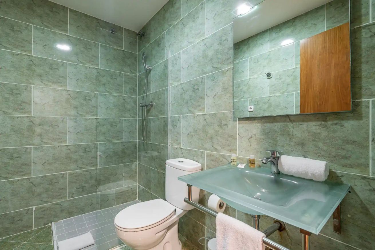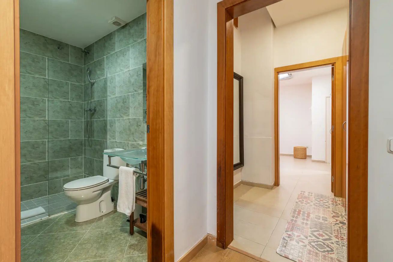 El apartamento cuenta con 2 baños, ambos equipados con ducha, agua caliente, lavamanos e inodoro; uno de ellos también dispone de bidé. Además, incluyen accesorios básicos de higiene.