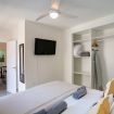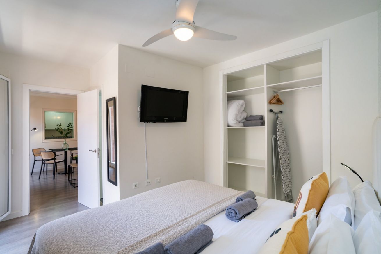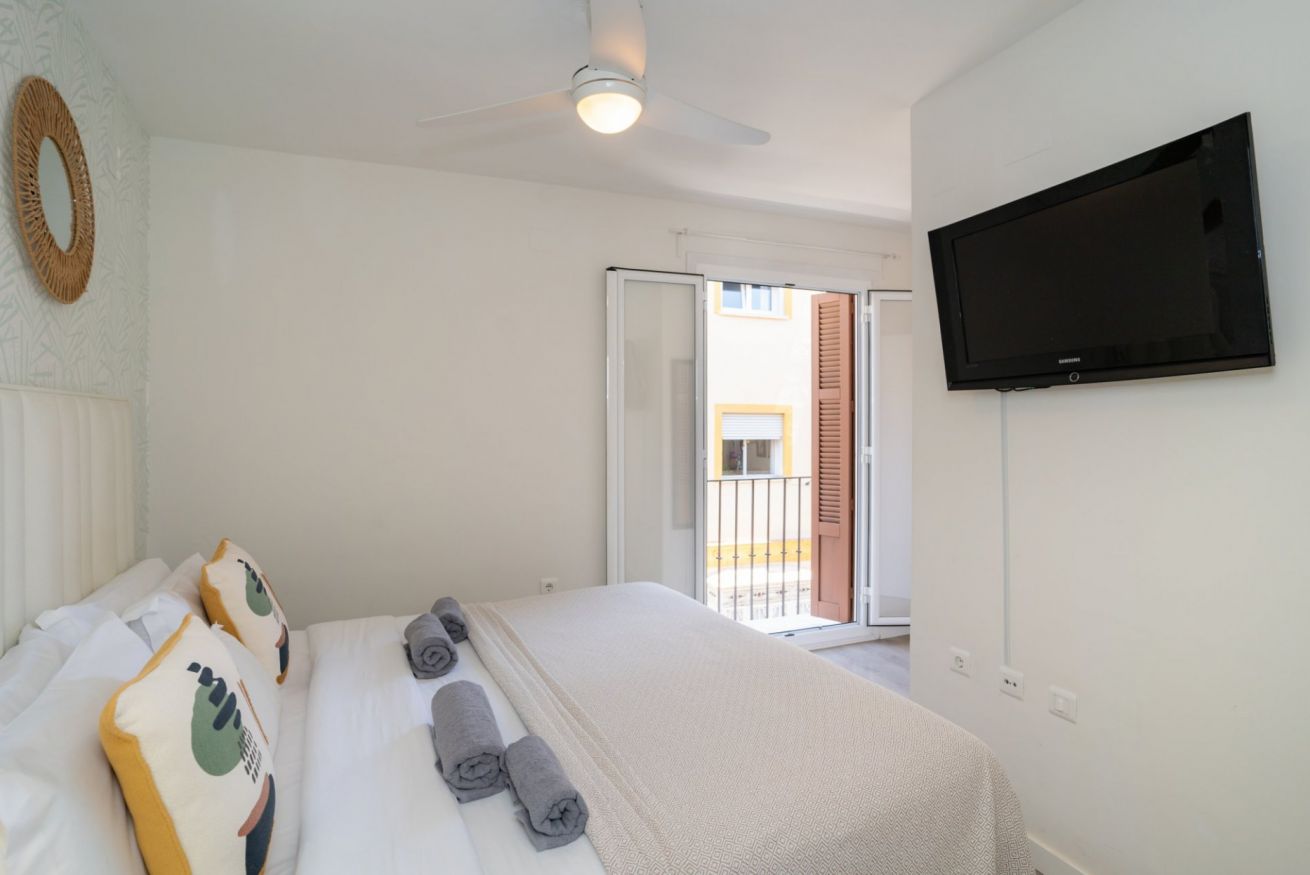 La habitación principal tiene cama doble y ventilador para descansar después de una buena noche. El salón cuenta con sofá cama, aire acondicionado y vistas a la calle, perfecto para el “after” o para recargar energías antes de salir otra vez.