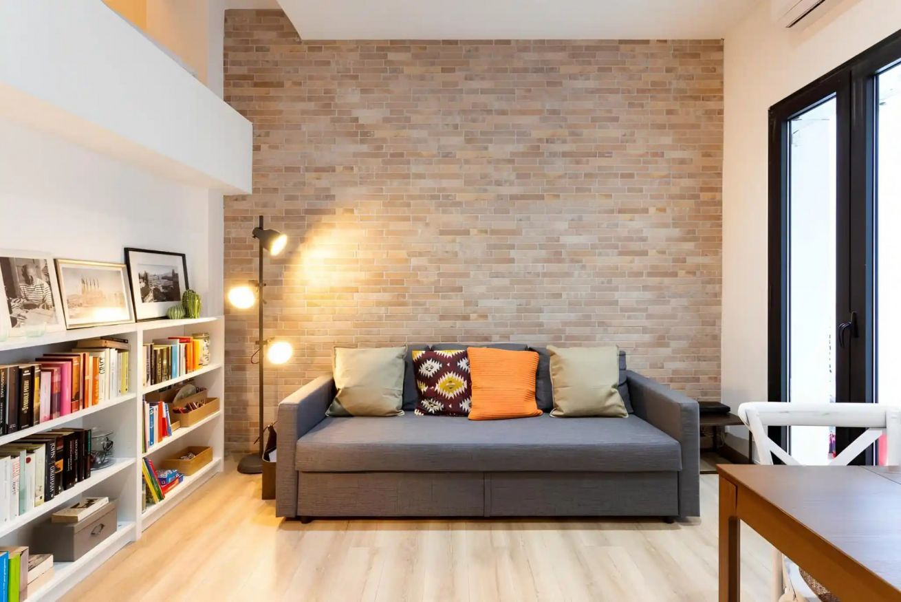 El alojamiento dispone de un dormitorio abierto con cama doble y ropa de cama incluida, así como un sofá cama, permitiendo hospedar hasta 4 personas. El ambiente es cálido y acogedor, perfecto para descansar después de un día explorando las calles de Barcelona.