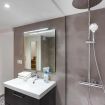 La zona de estar, situada en el centro del apartamento, favorece la circulación y cuenta con una TV Smart de 24”. Ten en cuenta que el aire acondicionado se encuentra únicamente en esta área.