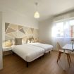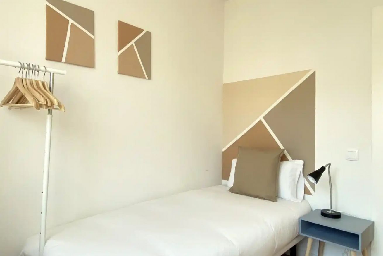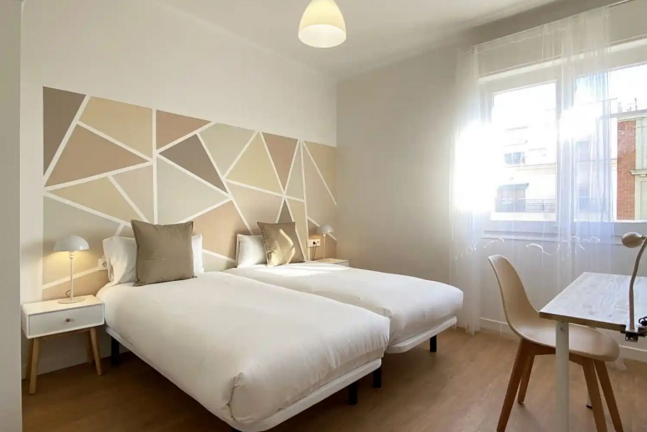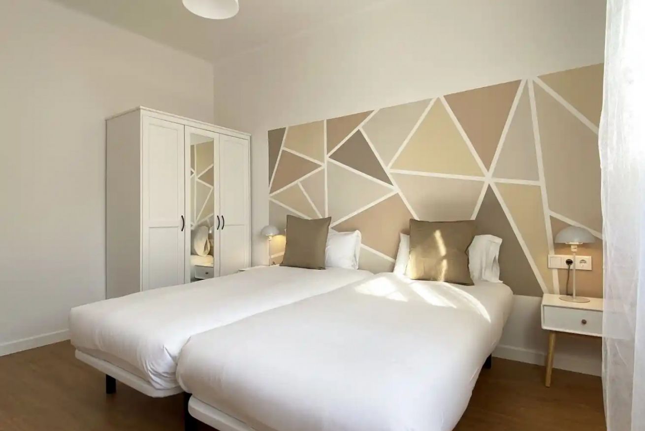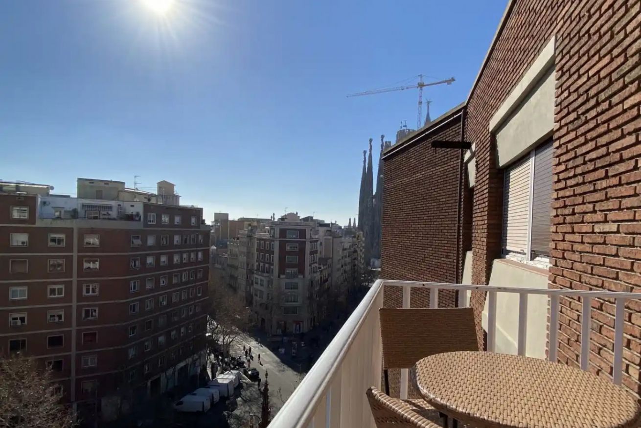 Este apartamento en Barcelona es ideal para viajeros de negocios, equipos corporativos, grupos de amigos y familias. Con capacidad para hasta 5 personas, dispone de cuatro dormitorios, cada uno equipado con escritorio ergonómico, Wi-Fi de alta velocidad y luz natural, creando un entorno óptimo para el teletrabajo. El piso es silencioso, lo que garantiza concentración y descanso. La habitación principal cuenta con cama doble de alta calidad y ropa de cama premium, mientras que las otras tres ofrecen cómodas camas individuales. Grandes ventanales en las habitaciones regalan vistas únicas a la Sagrada Familia de Gaudí.