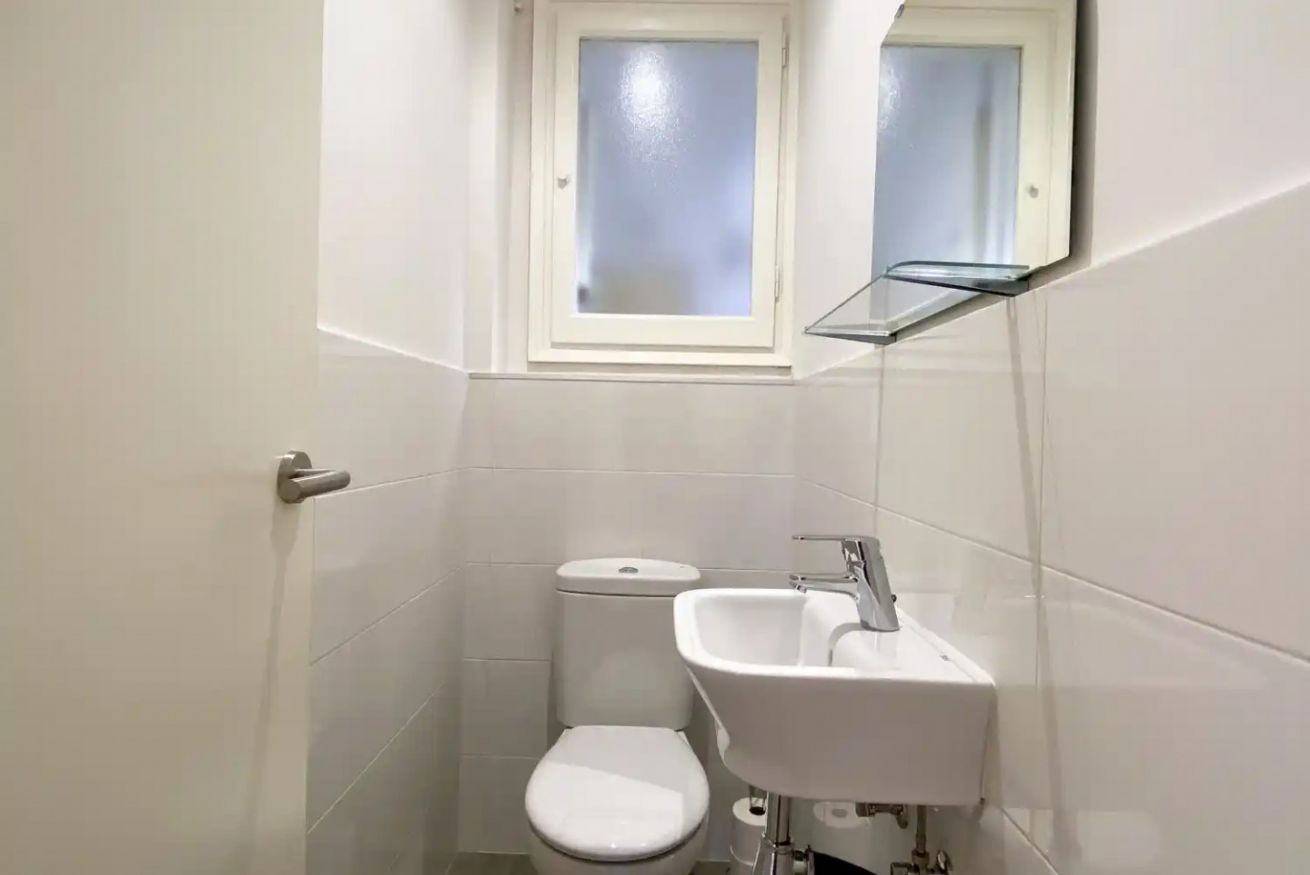 Incluye un baño completo y un aseo, ambos con acabados de calidad, ideales para comenzar el día con energía o relajarse tras una jornada laboral o turística. La cocina totalmente equipada cuenta con electrodomésticos modernos, incluido un lavavajillas silencioso, y un rincón de desayuno con vistas al templo, perfecto para reuniones informales o comenzar la mañana con un café.