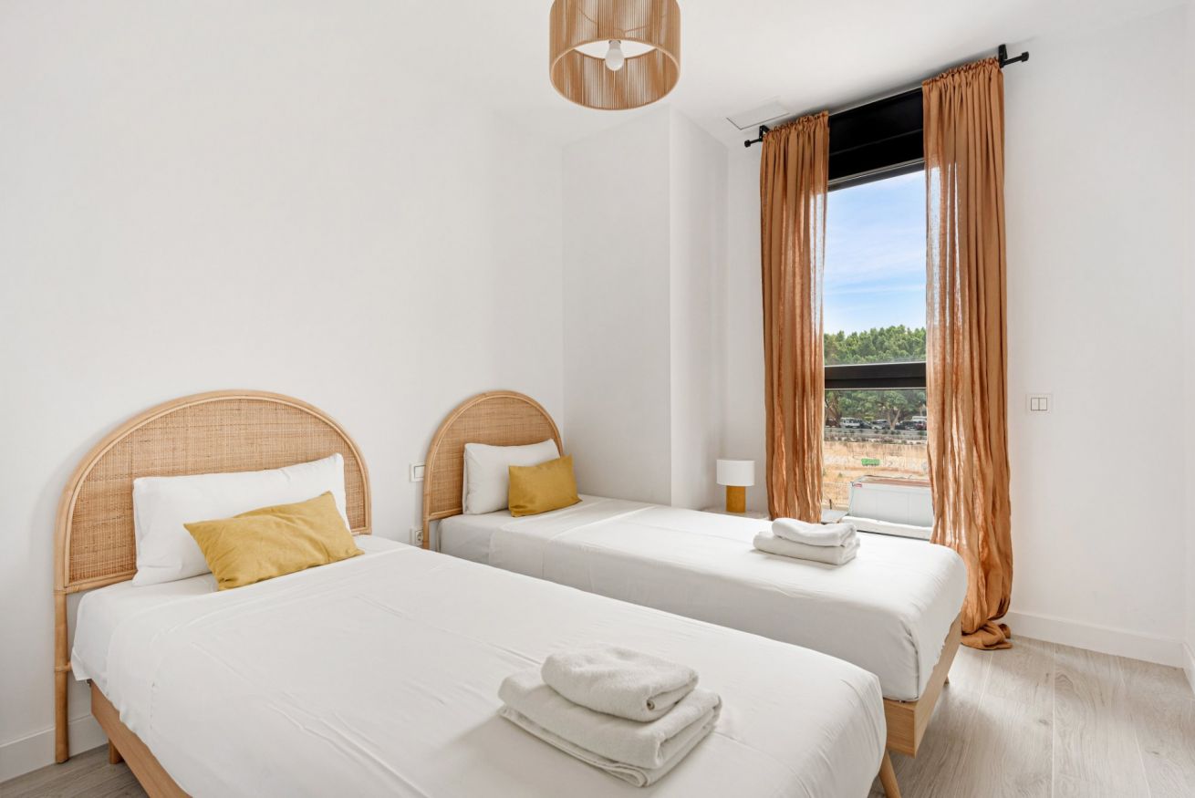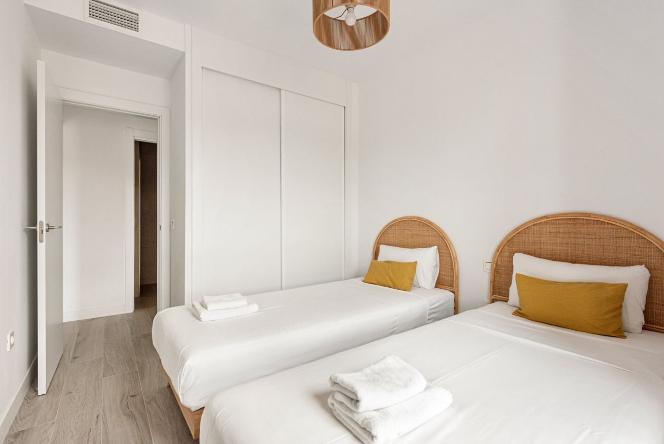 Este encantador piso situado en las prestigiosas Torres de Martiricos en Málaga ofrece una experiencia excepcional. Con capacidad para alojar cómodamente a seis personas, esta vivienda está perfectamente distribuida con dos dormitorios; uno con cama de matrimonio y baño ensuite y el otro con dos camas individuales, ideal para una familia o un grupo de amigos.