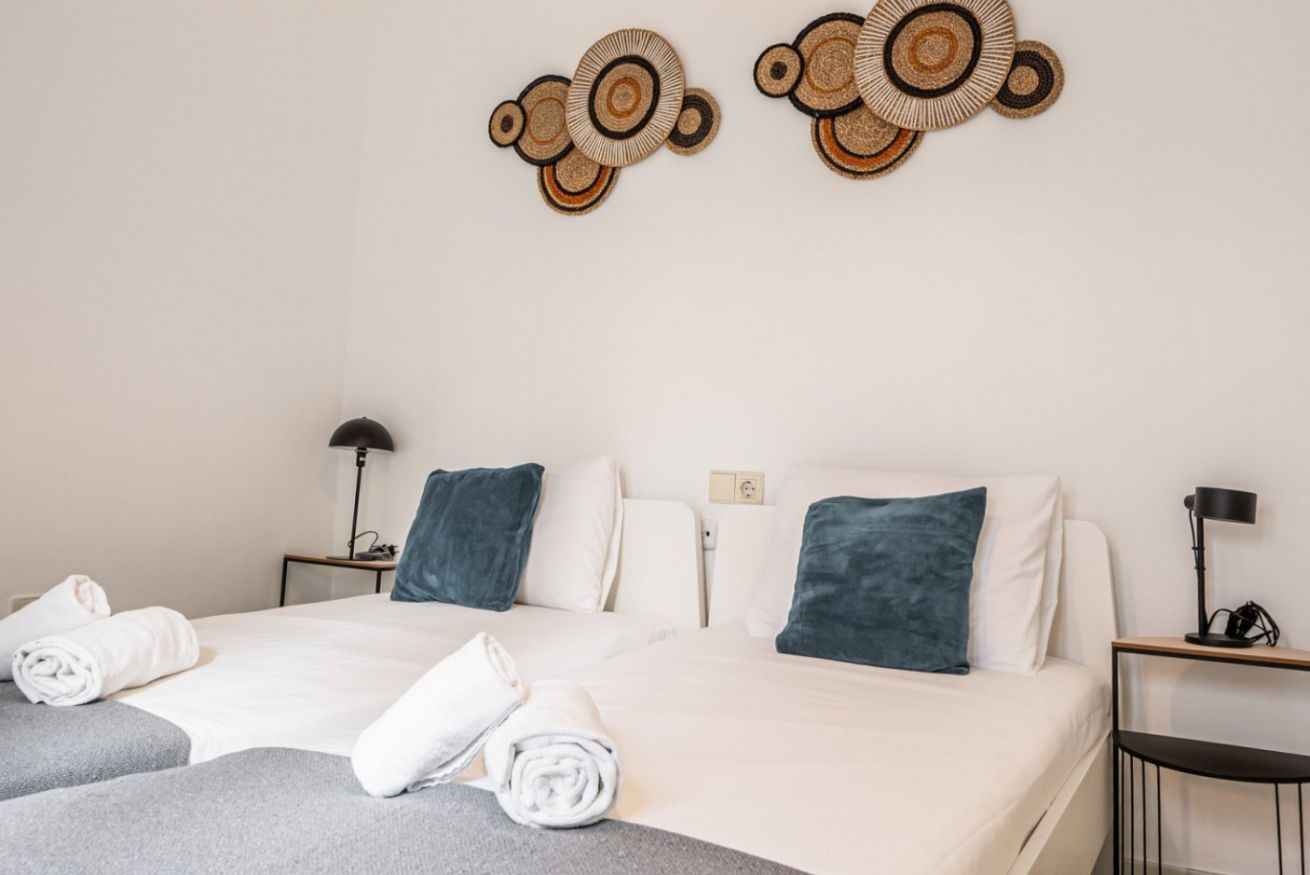El apartamento tiene capacidad para hasta 6 personas, lo que lo hace ideal para grupos familiares o amigos. Encontrarás una cómoda cama doble en una de las habitaciones, un sofá doble en el espacioso salón y dos camas simples en otra habitación. Todas las habitaciones tienen luz natural, lo que añade un toque especial a tu estancia.