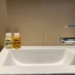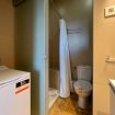 Esta amplia unidad tiene un baño completo. El cuarto de baño con hermosos azulejos tiene todas las características para un máximo descanso y relajación. El tocador moderno se encuentra debajo de un espejo montado en la pared y se completa con un solo lavabo. Este baño es un lugar gratificante para prepararse para un día ajetreado o relajarse de uno.