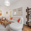 El amplio living está diseñado para la relajación, con un gran sillón y TV, perfecto para descansar después de un día de turismo.