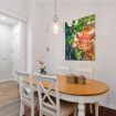 En el comedor, una mesa rodeada de sillas cómodas y decoraciones vibrantes aporta un toque alegre y acogedor al espacio.