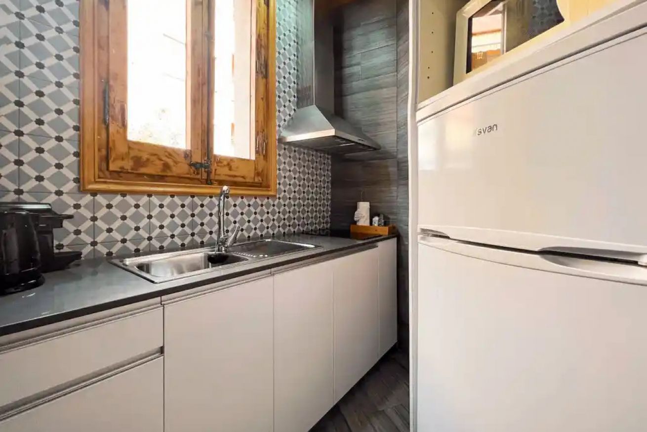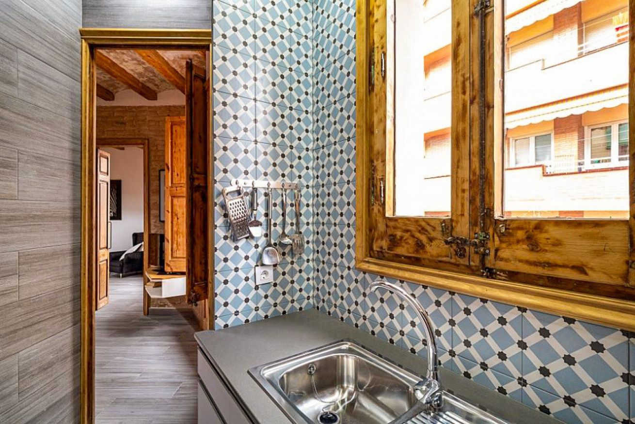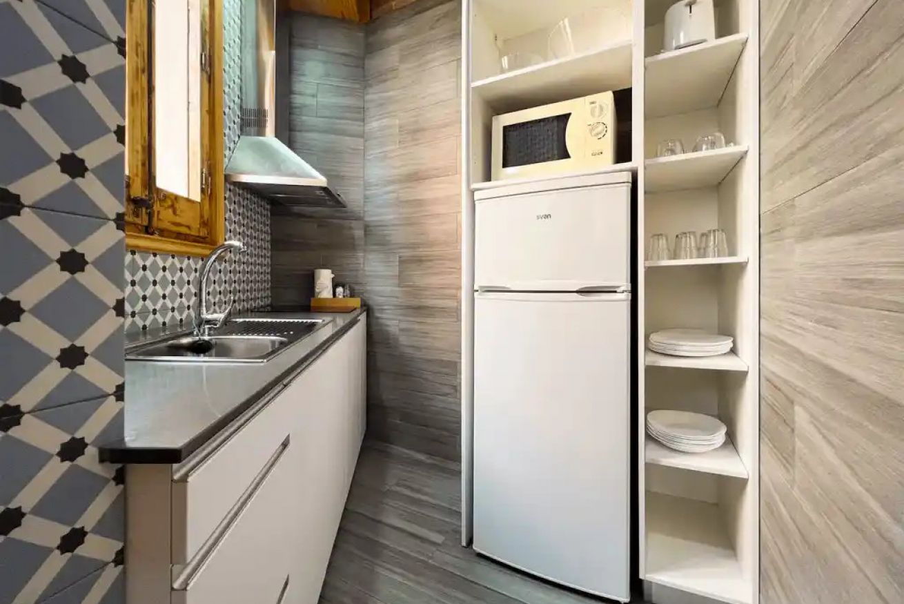 La cocina, completamente equipada con electrodomésticos, te permitirá preparar tus comidas favoritas o un desayuno tranquilo antes de explorar las encantadoras calles de Sants. Que también podrás observar desde tu balcón.