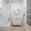 Para complementar las habitaciones, el ático ofrece tres baños modernos, brindando conveniencia y comodidad para todos los huéspedes. Los baños cuentan con accesorios contemporáneos y ofrecen opciones de ducha y bañera, lo que le permite relajarse y refrescarse después de un largo día explorando la ciudad.