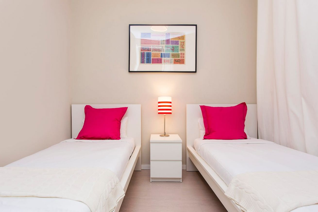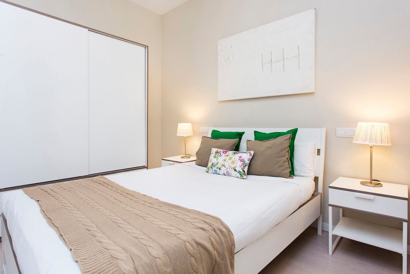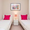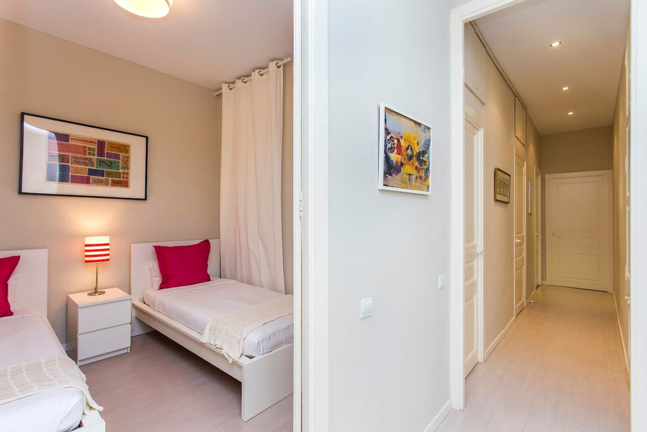 Este luminoso piso tiene 3 habitaciones, 2 de ellas con camas dobles y la tercera con dos camas individuales. Una de las habitaciones cuenta con baño integrado, y además dispone de otro baño en las zonas comunes. Ambos baños están equipados con ducha.