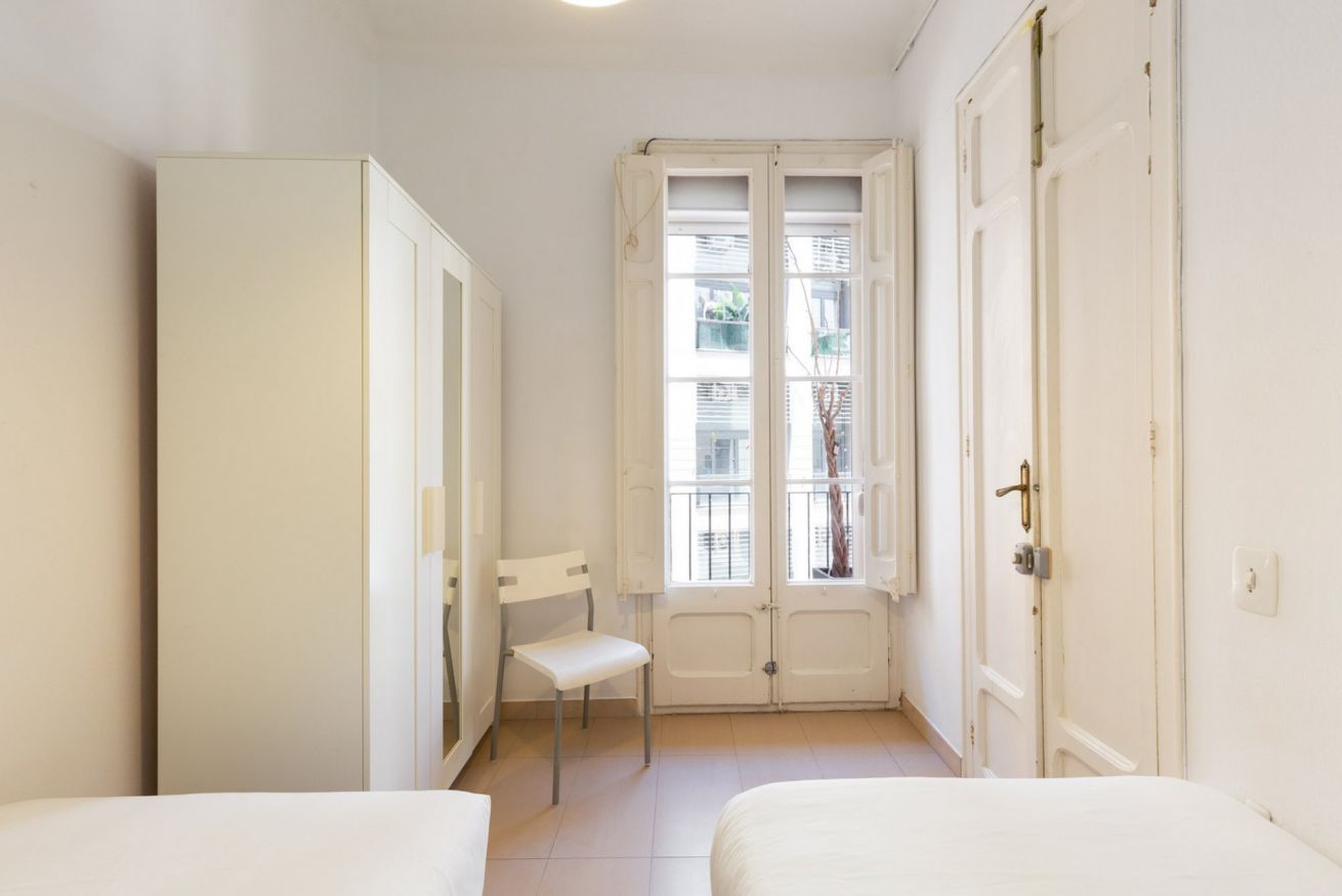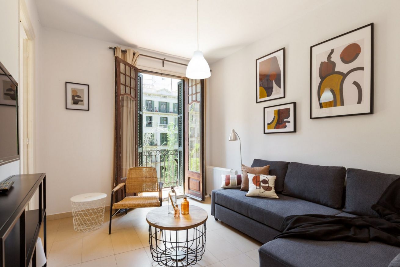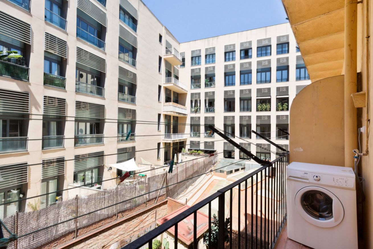 El barrio Sant Antoni es muy tranquilo y seguro. Al salir te encontrarás varios restaurantes, comercios y supermercados. Está muy cerca a Plaza España y la Avenida Paralel. Además, está muy bien conectado con las líneas de metro y bus.