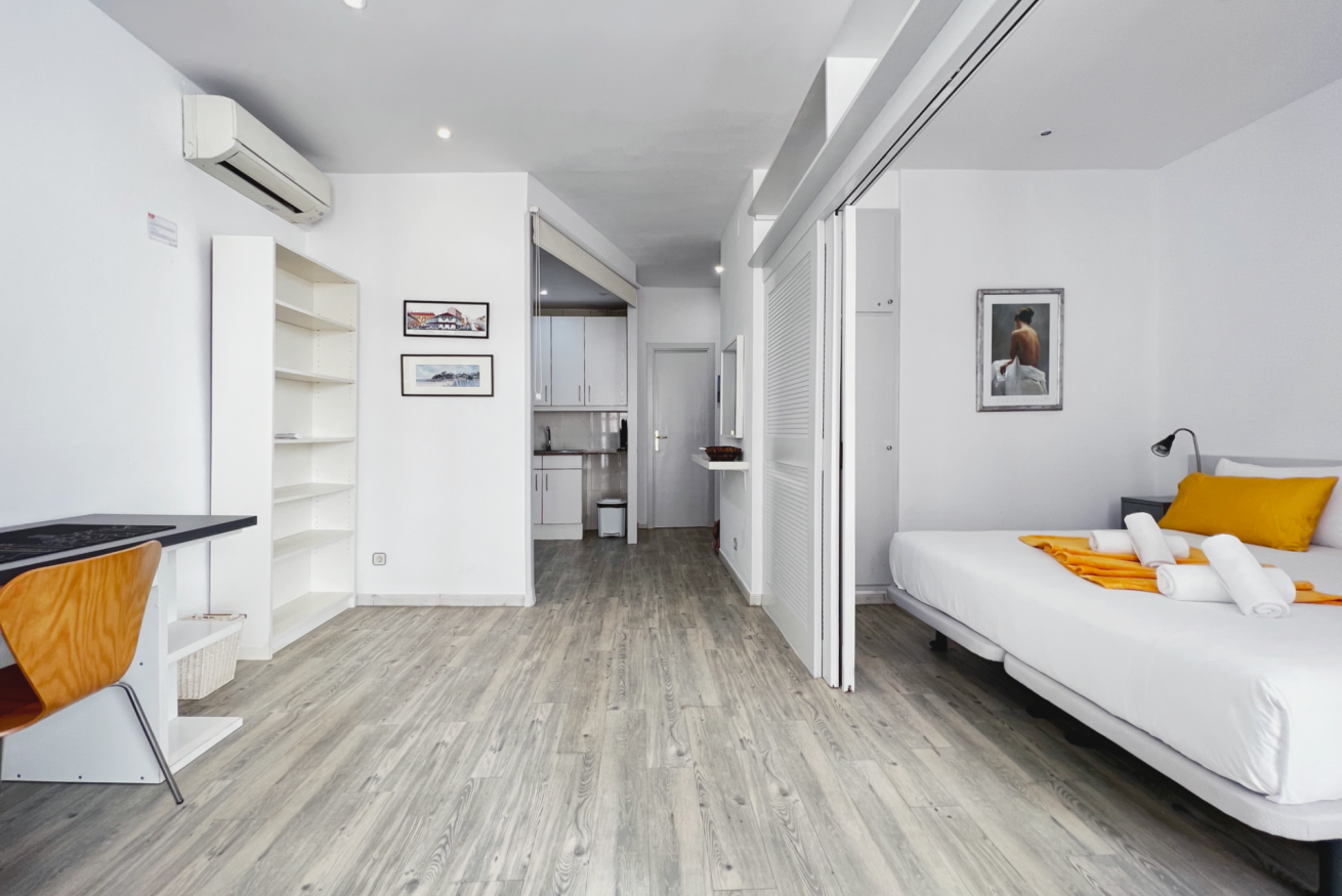 En cuanto al espacio exterior. Si bien no hay un patio o balcón privado conectado a esta unidad, quedarse aquí le permite salir de su puerta y sumergirse en la cultura y la belleza de Barcelona. Estás a una corta distancia a pie o en metro de cafeterías, restaurantes, boutiques en las aceras y algunos de los lugares más emblemáticos e históricos de España.