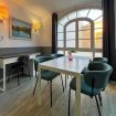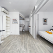 Este apartamento puede alojar hasta 4 personas a la vez, ya que el sofá cama en la sala de estar ofrece capacidad para 2 personas más, además de los dos que se quedan en el dormitorio. Este luminoso y espacioso estudio tiene una planificación de piso muy moderna, con todo que consiste en una gran sala, donde las paredes con aberturas separan las diferentes secciones. Esto le da al apartamento una sensación muy agradable y cómoda, donde todo está a mano todo el tiempo, pero se siente como habitaciones separadas. Este diseño hace que el apartamento parezca mucho más grande de lo que realmente es.