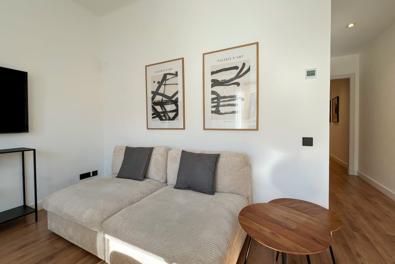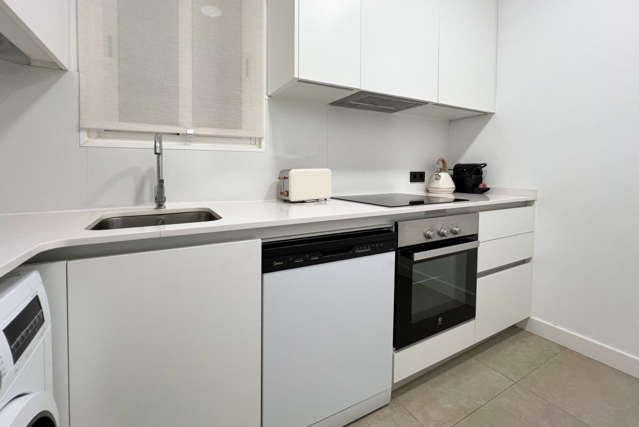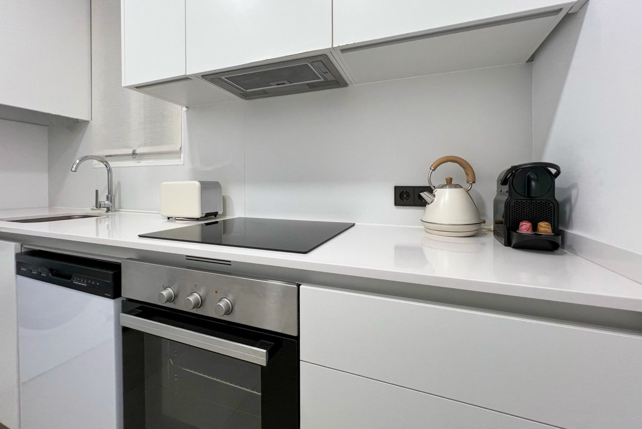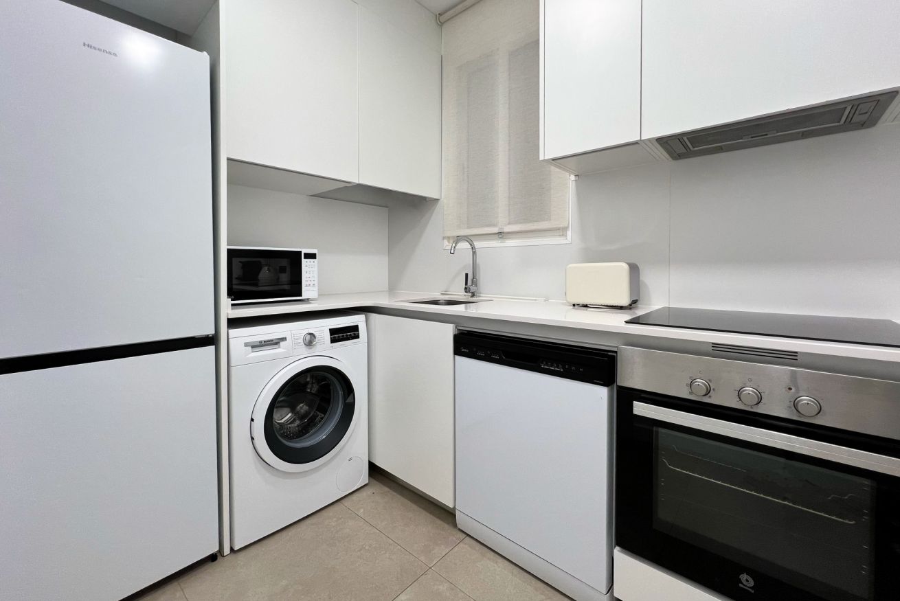 La cocina dispone de todo lo indispensable: horno, lavavajillas, microondas, cafetera, tostadora, utensilios de cocina y más, para que puedas preparar tus comidas favoritas con facilidad. La zona de estar, acogedora y luminosa, es ideal para relajarse tras un día descubriendo los rincones de Barcelona.