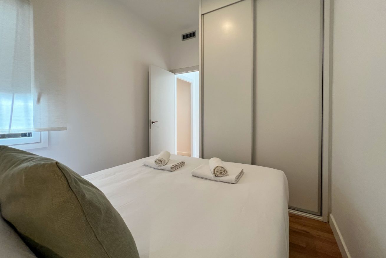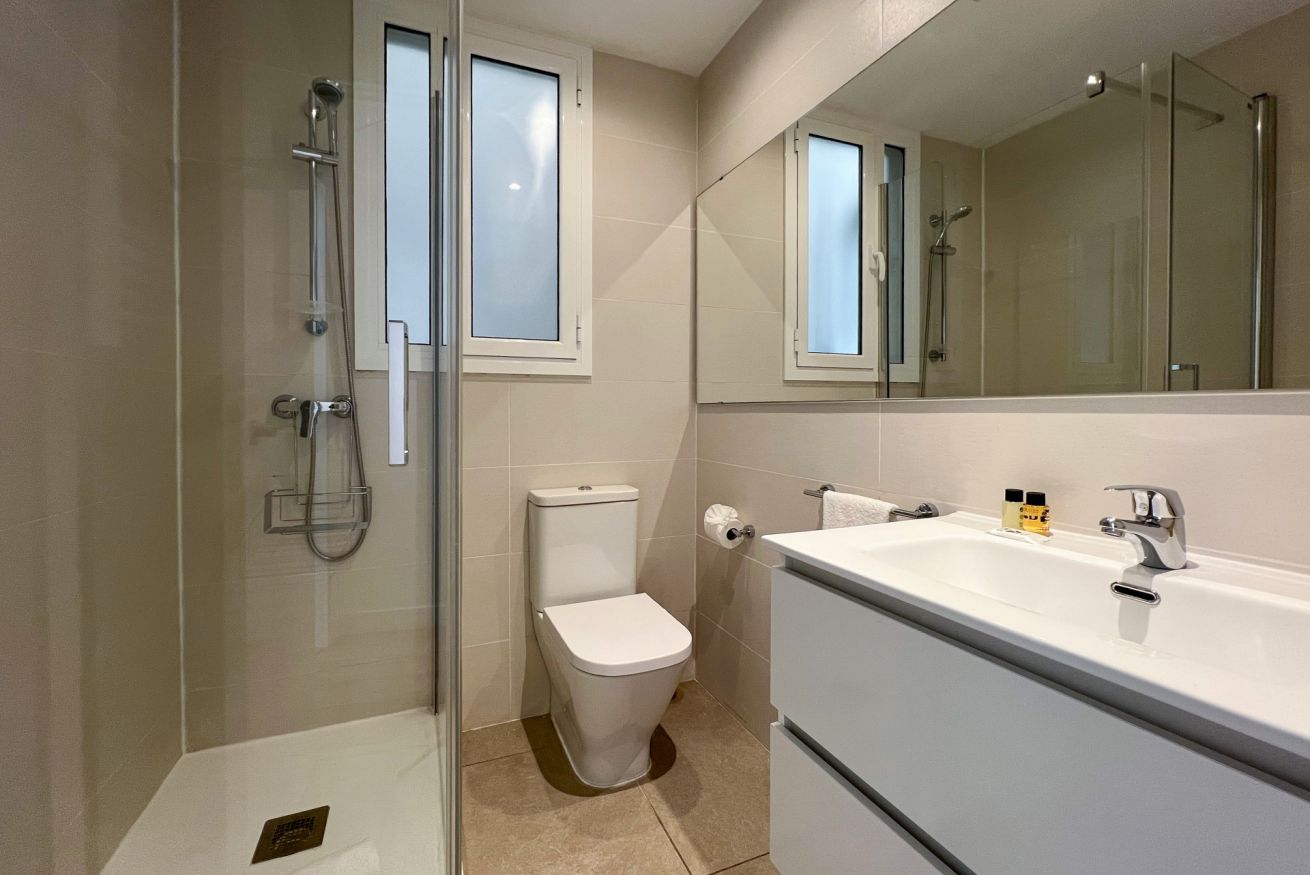 El edificio ofrece comodidades adicionales que marcan la diferencia, como un gimnasio para mantenerte activo, un ascensor para mayor confort y una amplia terraza compartida donde disfrutar del clima mediterráneo. Entre los servicios incluidos encontrarás wifi gratuito, televisión, aire acondicionado y calefacción, ropa de cama y toallas, cuna para bebés, secador de pelo, plancha y mucho más, asegurando que no te falte nada durante tu estancia.