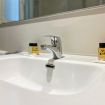 El baño completo está equipado con todo lo necesario para garantizar una estancia agradable y sin preocupaciones.