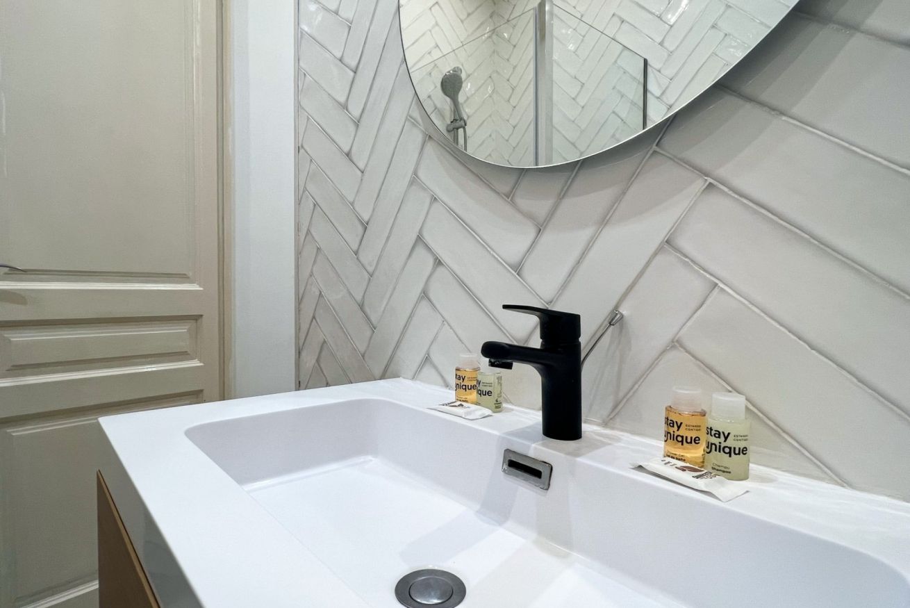 El apartamento cuenta con suelos típicos del modernismo catalán. Este apartamento, recientemente reformado (diciembre de 2016), ha conservado la personalidad de la Barcelona de principios del siglo XX, pero con un estilo internacional contemporáneo.