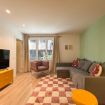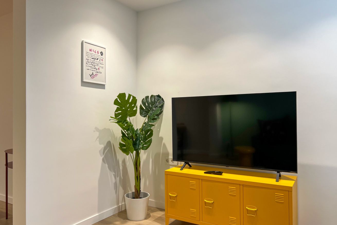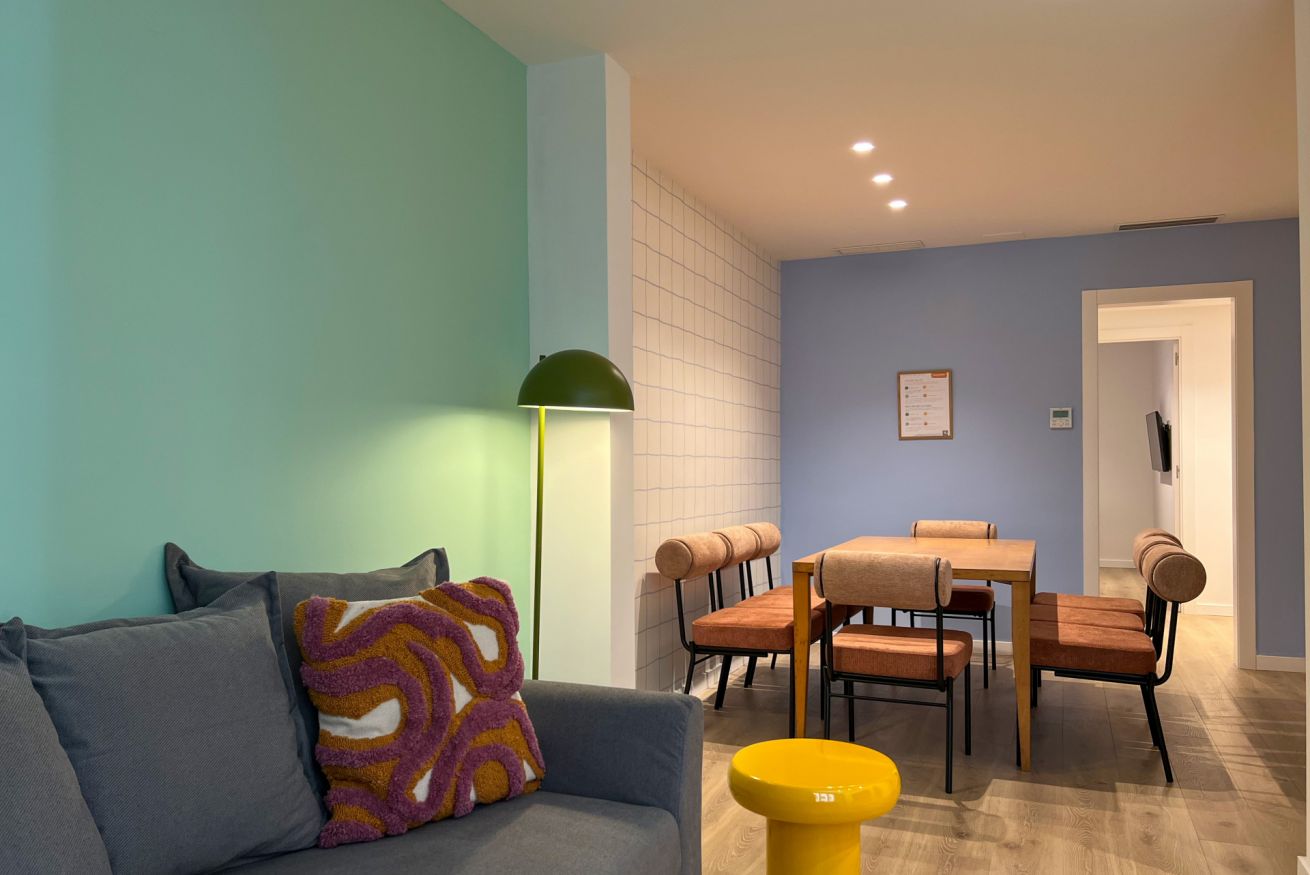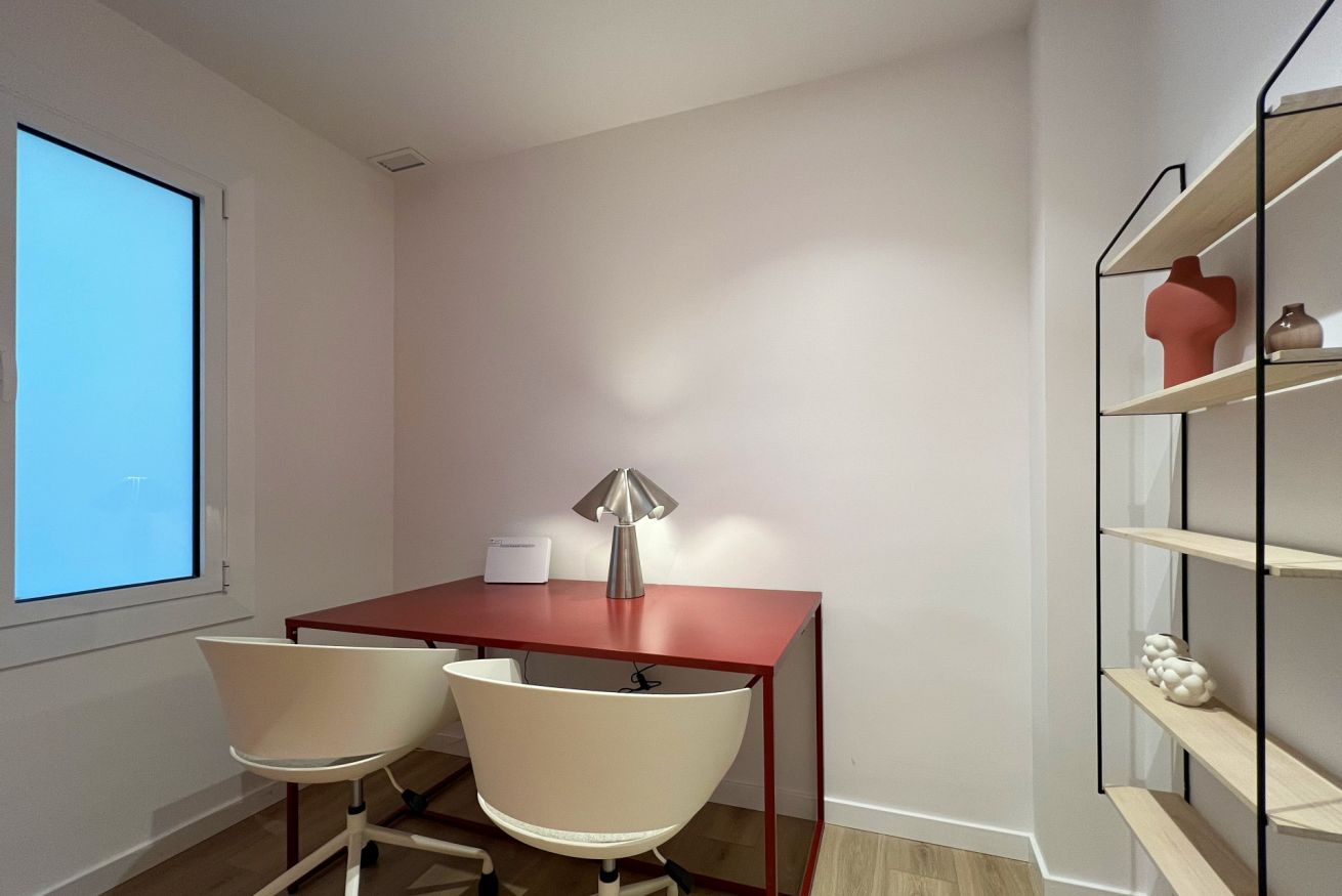 El apartamento también cuenta con un escritorio por si necesitas trabajar o estudiar, creando un rincón funcional para concentrarse. La decoración aporta un aire fresco y acogedor en cada estancia. La iluminación, el mobiliario y los detalles hacen de este apartamento un lugar único.