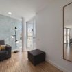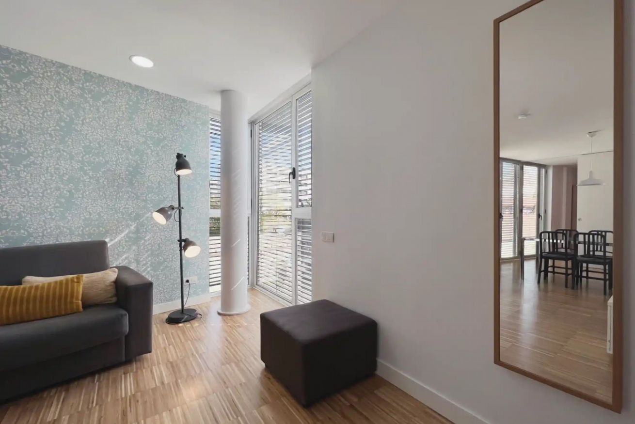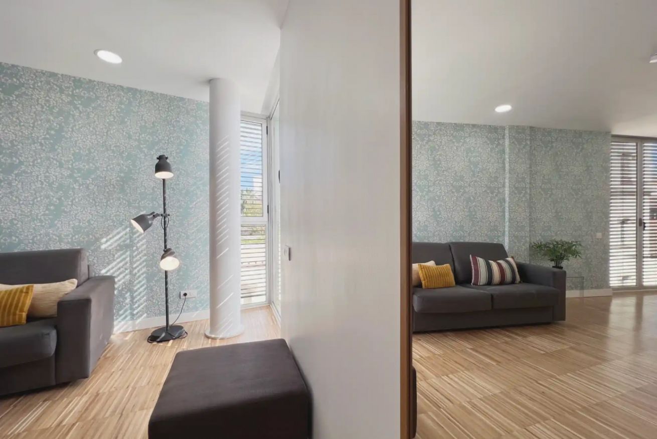 El área del salón se encuentra en el centro del apartamento, lo que hace que sea fácil moverse por el espacio.