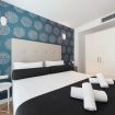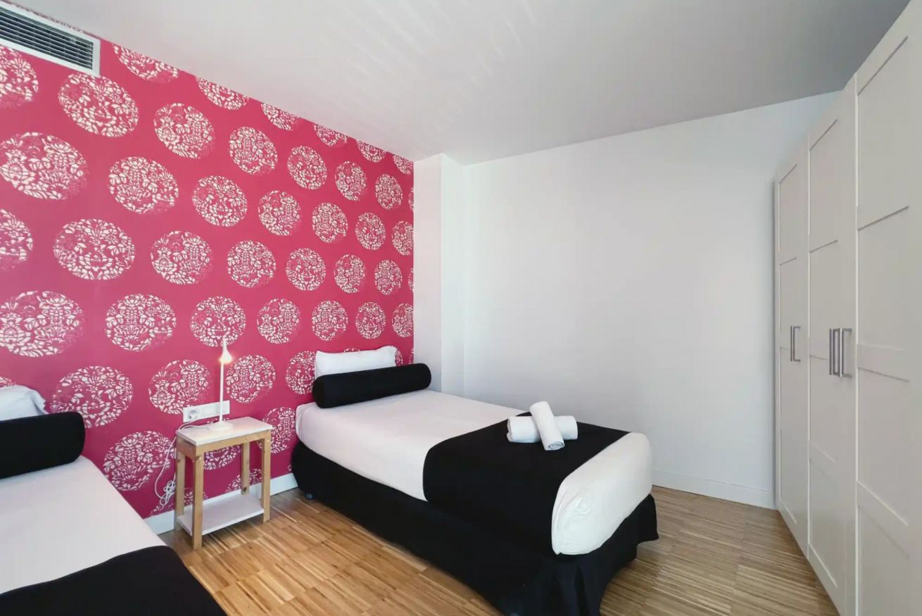 Este impresionante apartamento en Barcelona dispone de dos dormitorios y un sofá cama que permite un espacio habitable de hasta 6 personas. El primer dormitorio está equipado con una cama de matrimonio de alta calidad, ropa de cama de marca y una iluminación natural suave. Las ventanas son grandes y proporcionan a la habitación una luz natural impresionante que asegurará que el día comience de la manera correcta. La segunda habitación está equipada con 2 camas individuales, ideal para niños o amigos. Las habitaciones son cálidas y acogedoras, y un gran lugar para relajarse después de explorar la hermosa ciudad.