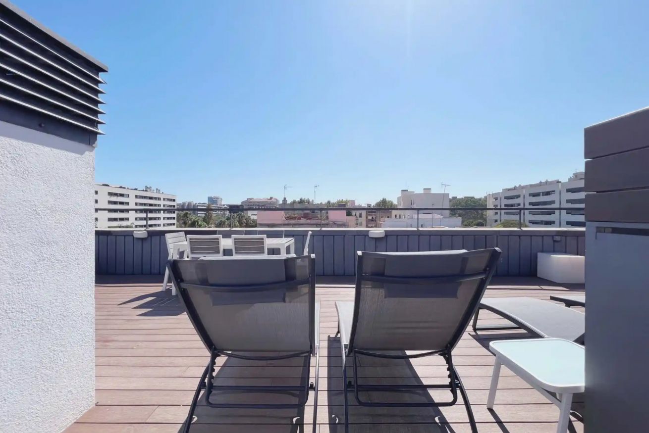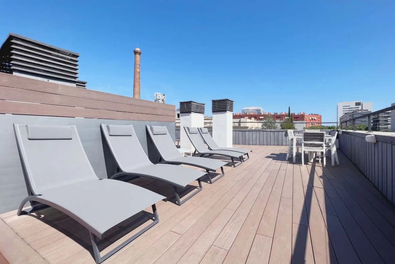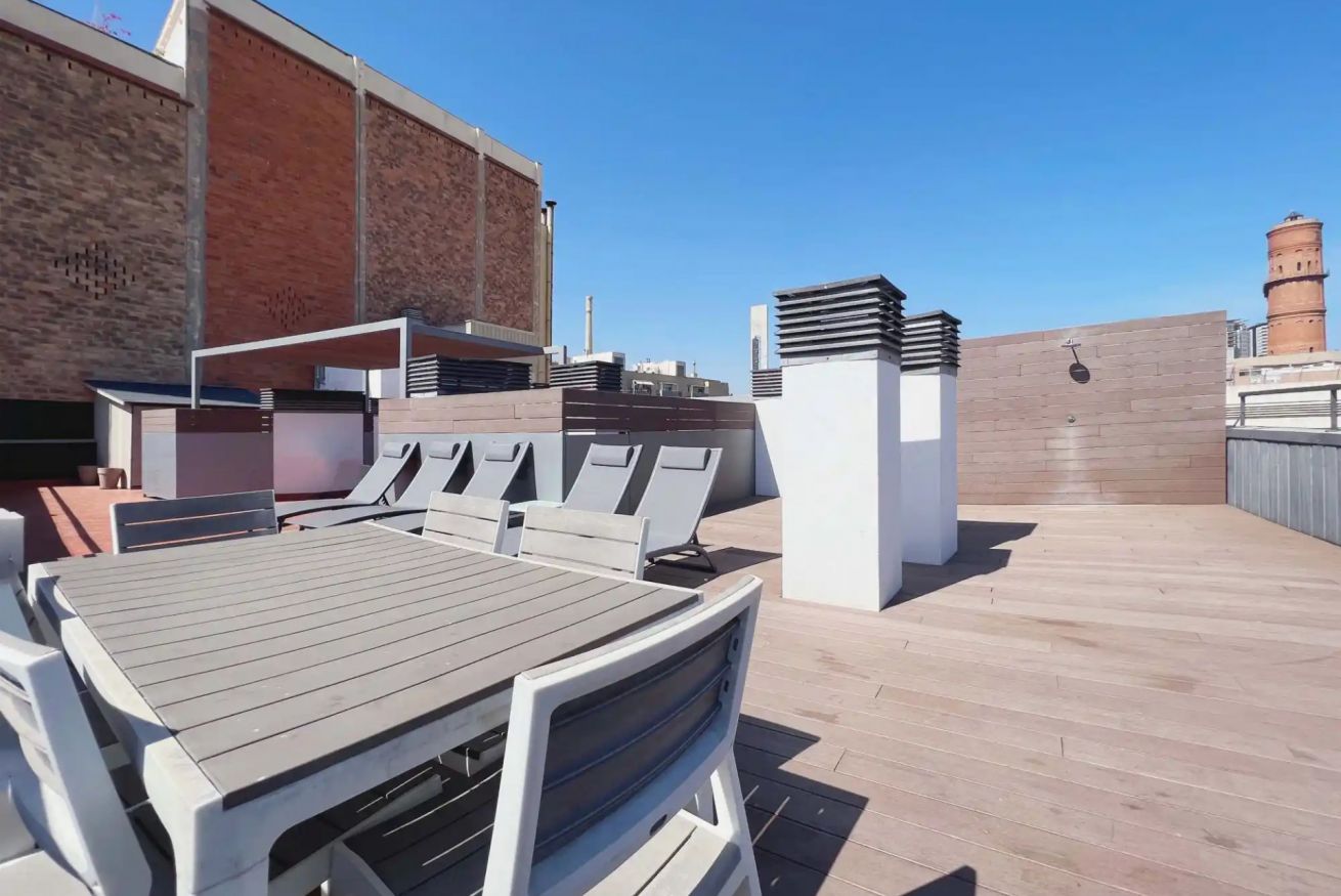 Este apartamento viene con una gran terraza en la azotea que es lo único que tienes para compartir con el resto del edificio. Tiene algunas tumbonas, una buena ducha y una mesa de comedor. Quedarse aquí le permite salir por la puerta de su casa y estar a sólo un corto paseo de la playa. También se encuentra a poca distancia en metro de los cafés del patio, restaurantes, boutiques y algunos de los monumentos más emblemáticos e históricos de España.