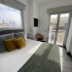 La habitación principal es un refugio de paz, con una cama doble de alta calidad que invita al descanso. Su decoración moderna y elegante está acompañada por una iluminación suave y cálida que resalta los detalles del mobiliario y la pared. Los grandes ventanales permiten que la luz natural inunde la habitación durante todo el día, haciendo que el espacio se sienta amplio y luminoso. Además, la ubicación del apartamento permite disfrutar de la tranquilidad, pero también de la cercanía a la vida dinámica de Málaga, con sus tiendas, restaurantes y lugares de interés a poca distancia.