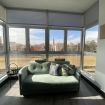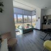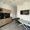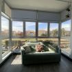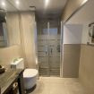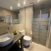 La habitación principal es un refugio de paz, con una cama doble de alta calidad que invita al descanso. Su decoración moderna y elegante está acompañada por una iluminación suave y cálida que resalta los detalles del mobiliario y la pared. Los grandes ventanales permiten que la luz natural inunde la habitación durante todo el día, haciendo que el espacio se sienta amplio y luminoso. Además, la ubicación del apartamento permite disfrutar de la tranquilidad, pero también de la cercanía a la vida dinámica de Málaga, con sus tiendas, restaurantes y lugares de interés a poca distancia.