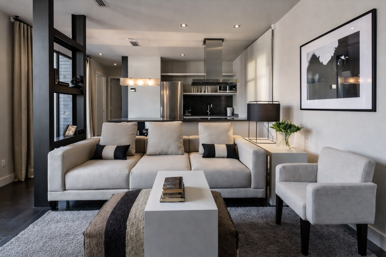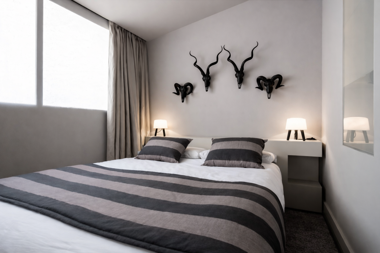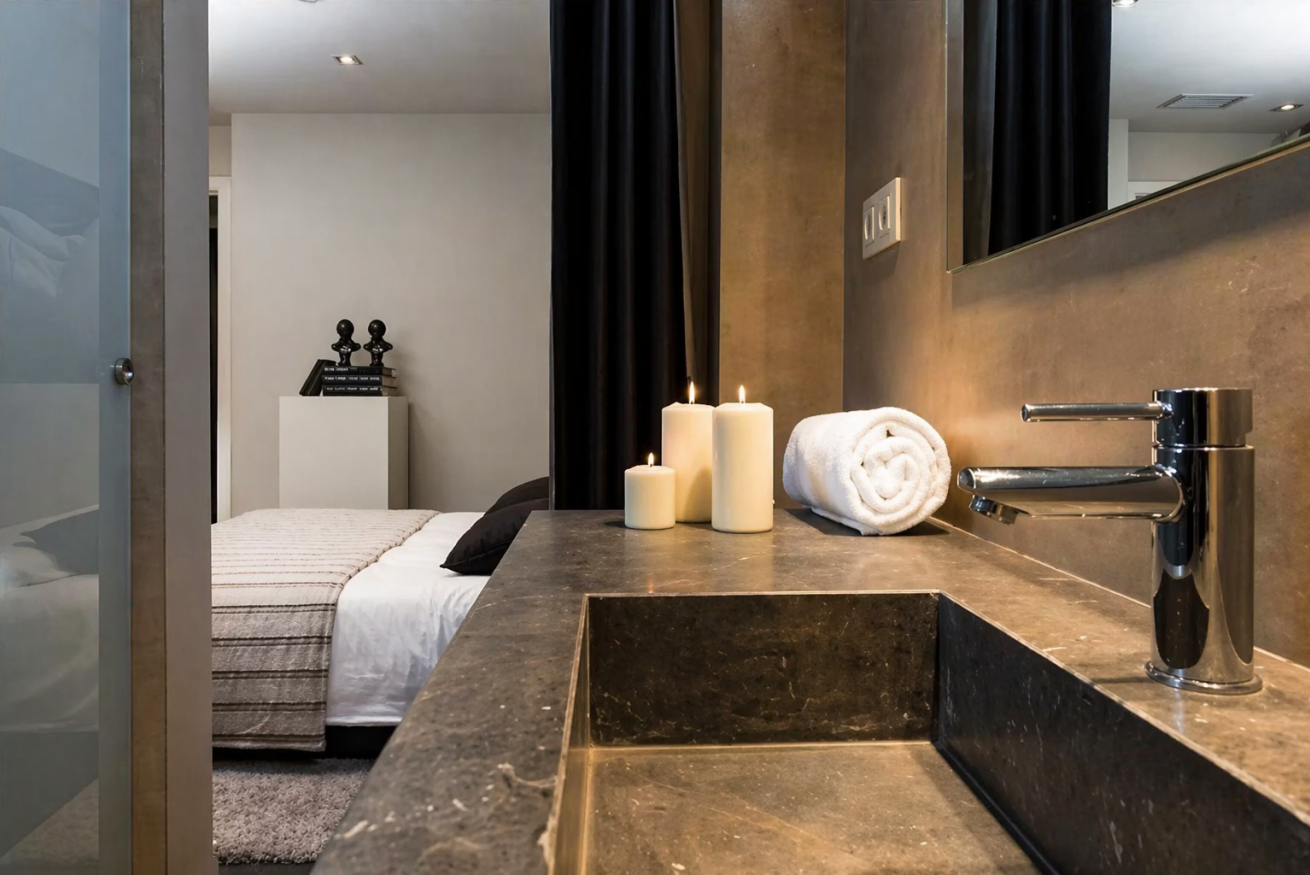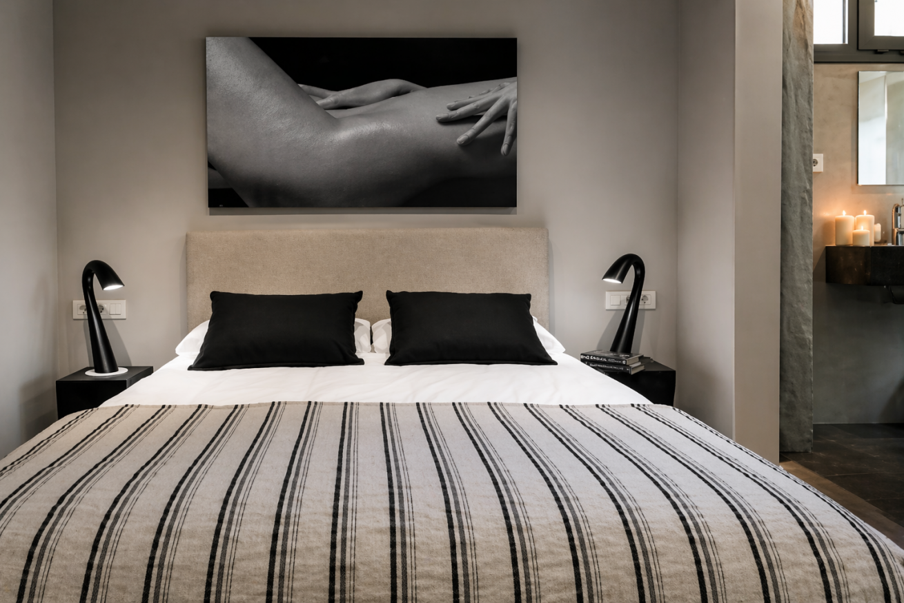 Dispone de dos dormitorios dobles, ambos con una cama grande, ropa de cama de alta calidad, y iluminación suave. Ideal para descansar después de un día de recorrer en la ciudad.
