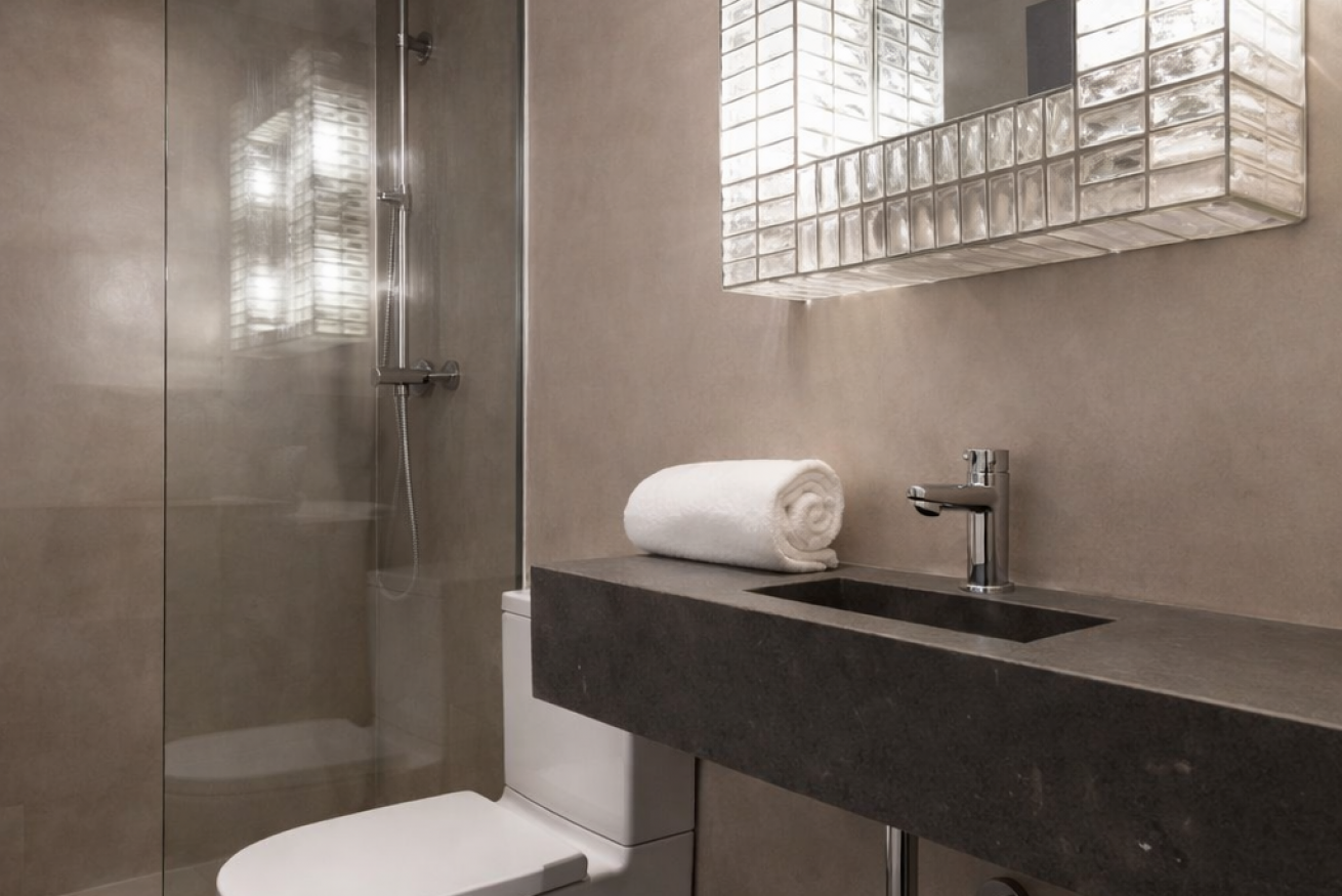 Hay dos baños completos, con acabados modernos, y lavabos de piedra. Uno de los baños está en suite.