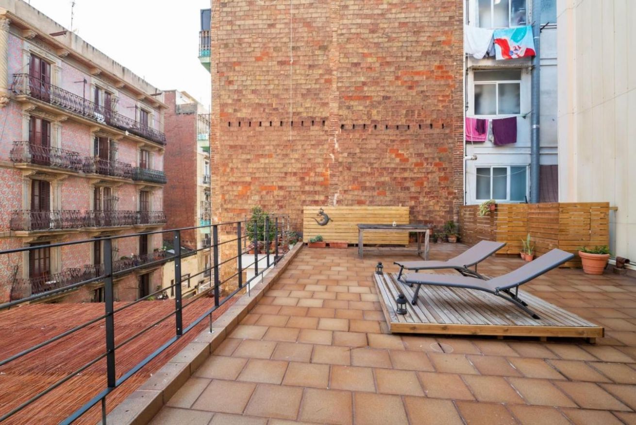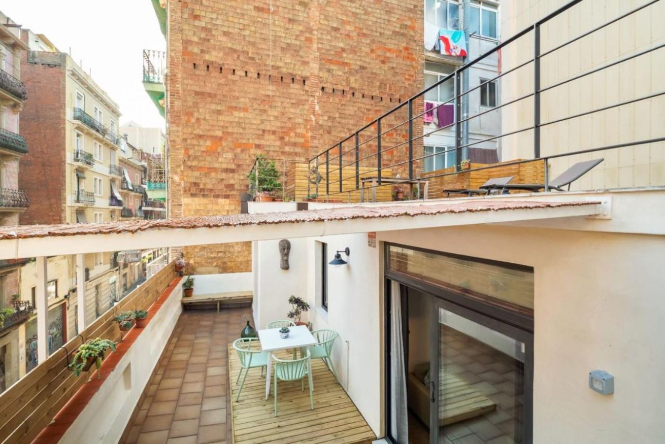 Apartamento con terraza con capacidad para hasta 6 personas, es el espacio perfecto para viajar con familias, grupos de amigos o viajeros que buscan comodidad y estilo en una ubicación privilegiada de Barcelona.