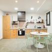 La cocina está completamente equipada con todo lo necesario: nevera, maquina de café, lavavajillas, hervidor eléctrico, elementos esenciales de cocina, horno, microondas, tostadora, y mucho más...