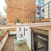 La terraza esta equipada con mobiliario exterior y una ducha, ideal para disfrutar de un desayuno al sol, una copa de vino al atardecer o simplemente relajarte al aire libre en un entorno tranquilo y urbano.