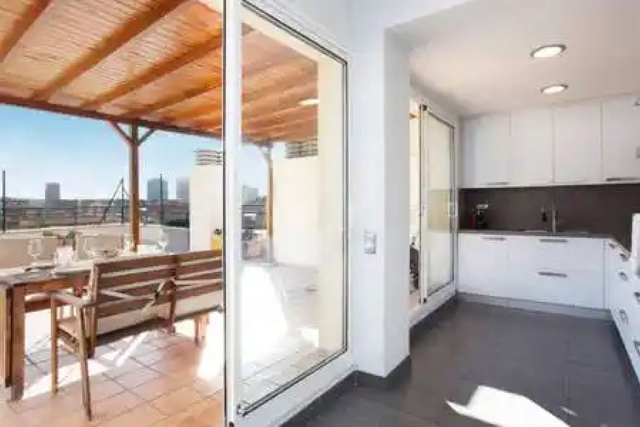 La gran terraza, con vistas espectaculares, es perfecta para apreciar la ciudad y disfrutar de comidas al aire libre. Alojarte aquí te permite salir por la puerta de casa y sumergirte en la cultura y belleza de Barcelona. Estás a solo un corto paseo o trayecto en metro de cafés con terraza, restaurantes, boutiques y algunos de los monumentos más emblemáticos de España.