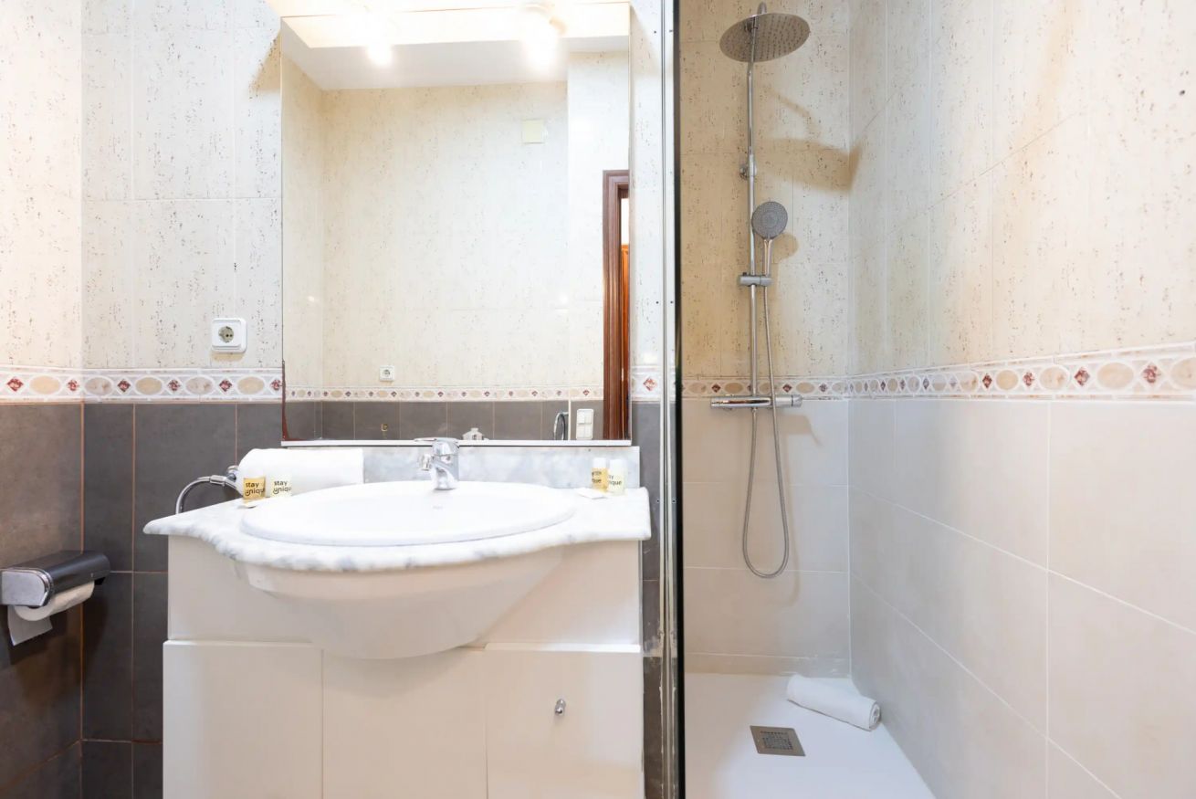 El baño cuenta con todo lo necesario para relajarse después de un día explorando la ciudad: agua caliente, ducha, lavamanos, espejo, inodoro, bidet.