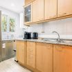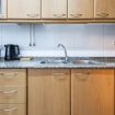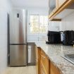 La cocina luminosa está completamente equipada con horno, heladera, cafetera, lavavajillas, utensilios de cocina y espacio de guardado. En el comedor se encuentra la mesa comedora y sus sillas para degustar las ricas comidas.