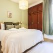 Cuenta con dos habitaciones, una con una cama matrimonial y la otra con una cama individual. El cuarto principal tiene una gran ventana y ambos cuenta con espacio de guardado.