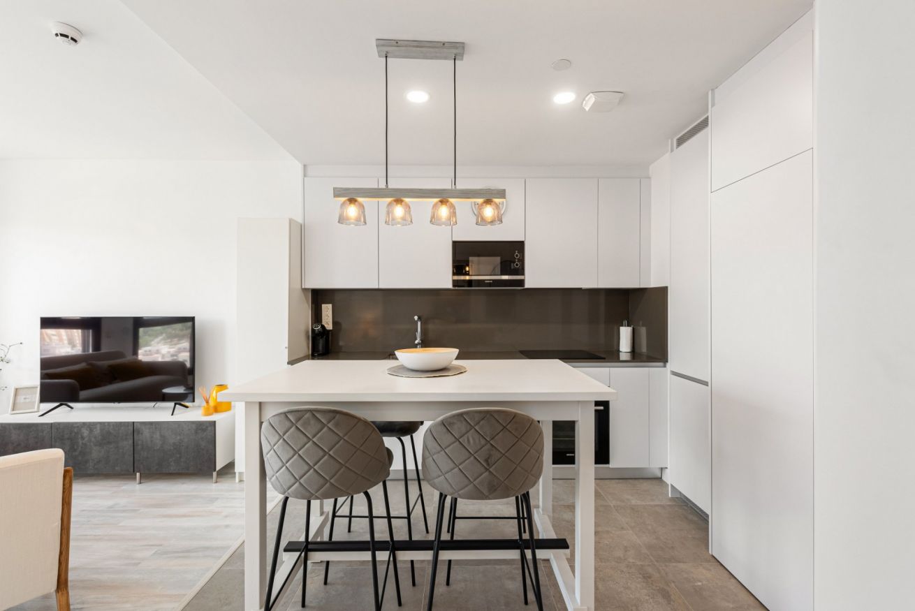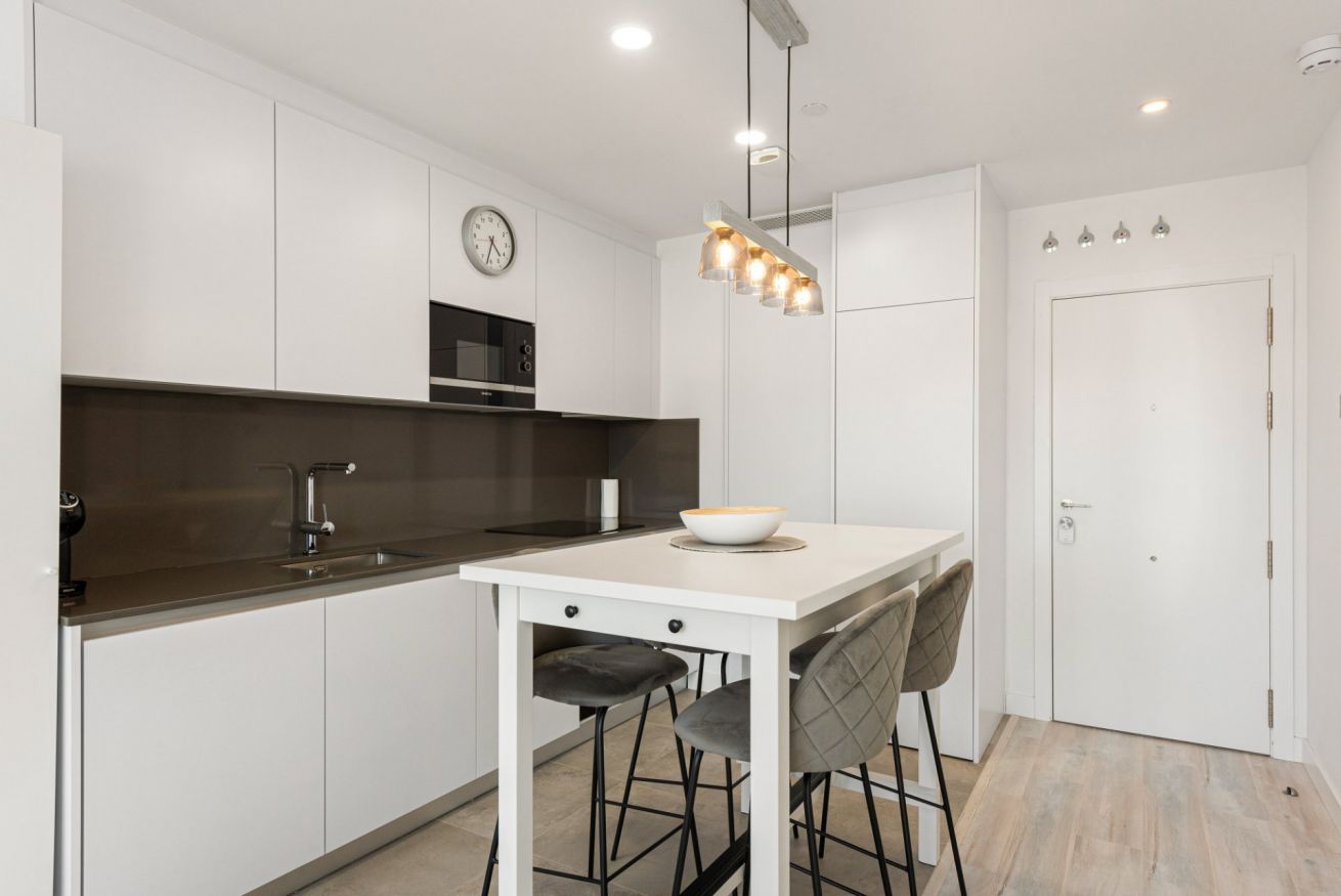 Su cocina se encuentra equipada con horno, cafetera, microondas y otros utensilios básicos para que pueda preparar deliciosos platos y disfrutarlos en nuestra mesa comedor.