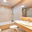 El baño está completamente equipado con ducha, bañera e inodoro.